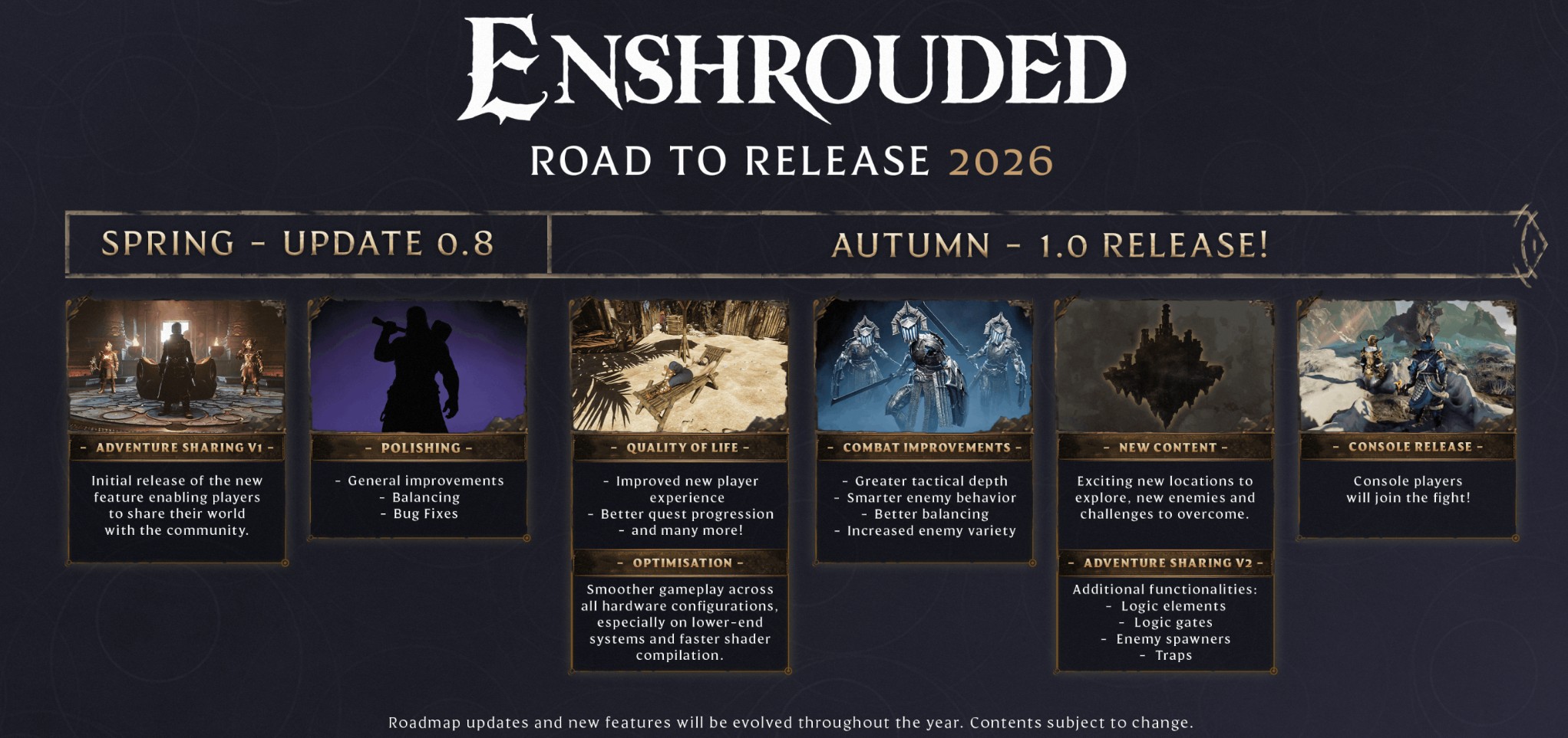Keen Games says Enshrouded is aiming for a full 1.0 release in fall 2026. The studio shared the window around the game’s second anniversary in Early Access, alongside an updated “Road to Release” overview of what it wants to ship with the launch build.