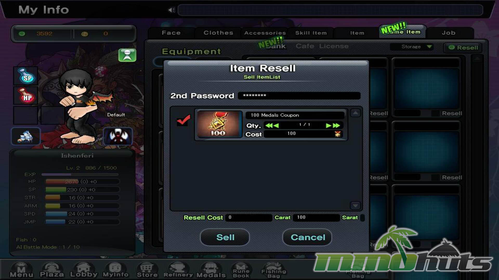Gaon uses a Scimitar and a Shock Spear, with a focus in VIT. Skills for this dragon-turned-human include Dragon Slash, Lightning God Slash, and Spinning Spear Strike.