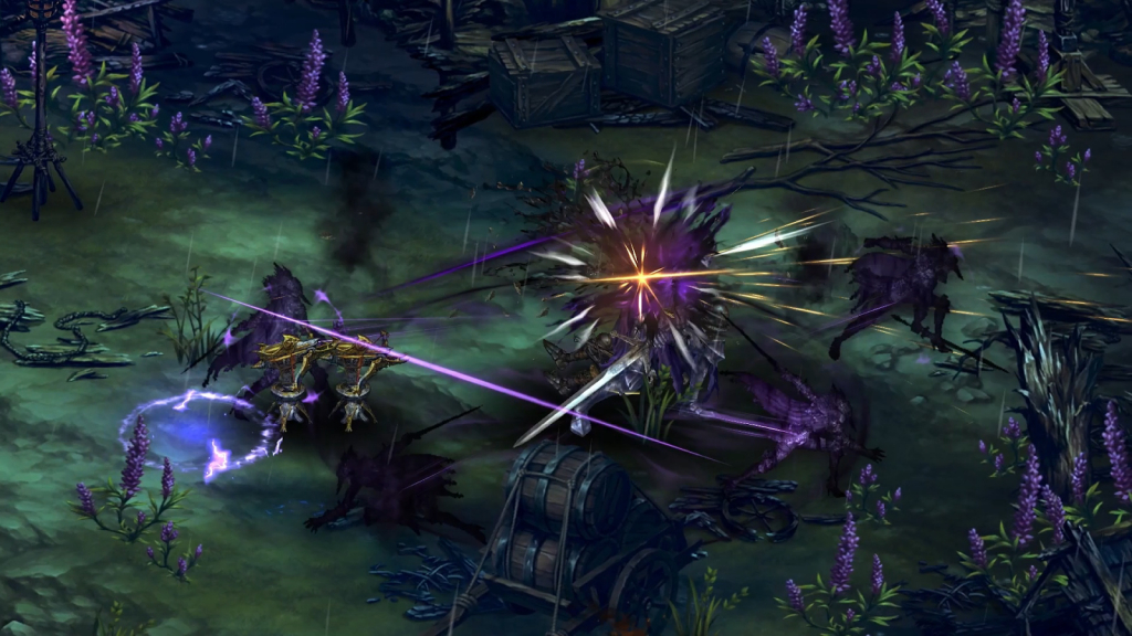 There’s also no questioning that ASTRA: Knights of Veda offers a distinct visual style, with artwork that blends the macabre and the fantastic. Highly detailed characters and terrifying enemies engage across beautifully painted backgrounds that set the ominous yet captivating mood without distracting from the action.