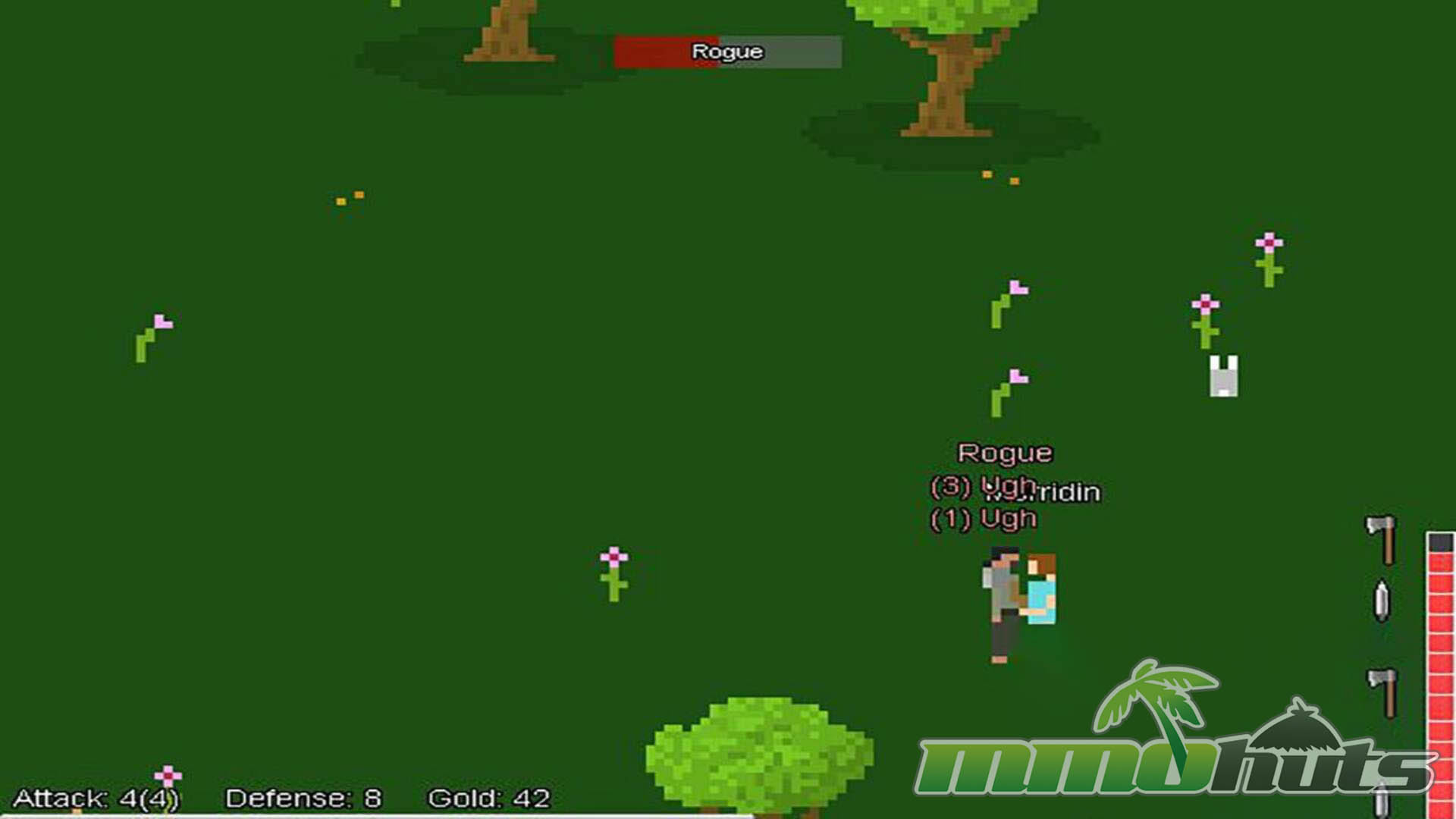 The backbone of Aberoth is familiar MMO territory: accept quests, defeat enemies, and use the rewards to push into tougher territory. Where it differs from many modern MMORPGs is how much of your power is tied directly to what you are wearing and wielding. Offensive and defensive strength comes from equipment rather than a complex stat progression, while leveling primarily increases your HP. That makes loot feel extremely important, and it also makes losing loot feel like a real setback.