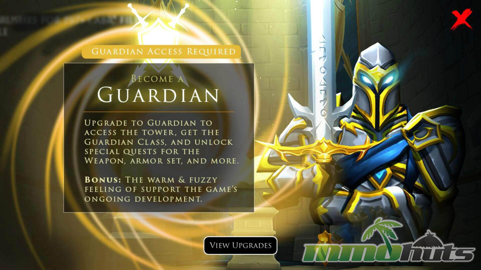 AdventureQuest 3D avoids the feel of a traditional cash shop, but monetization still exists in a few key places. The standout purchase is the Guardian class, which also includes access to the Guardian Tower, class-focused quests, and exclusive gear.
