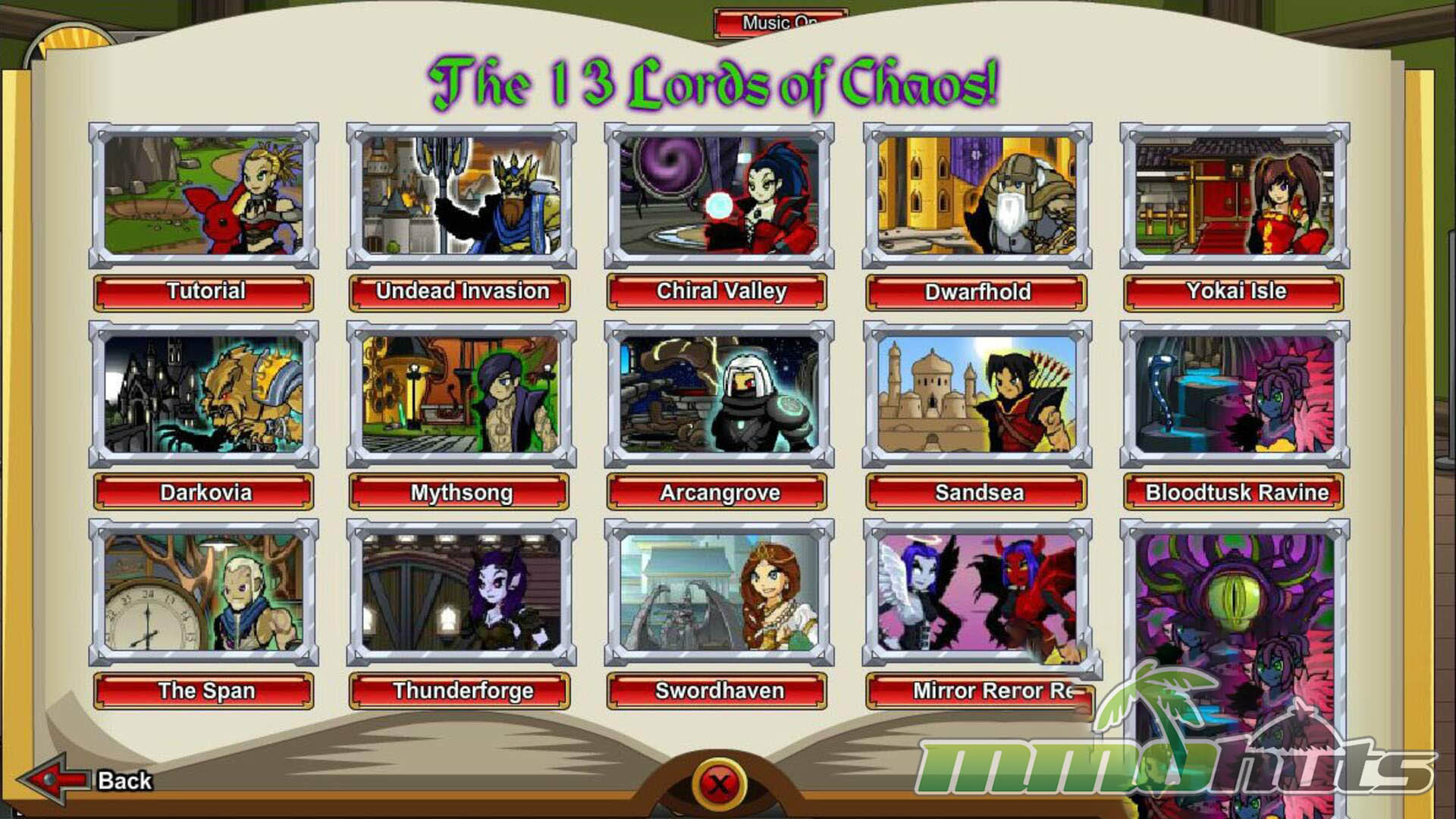 The setting is a classic good-versus-evil fantasy conflict centered on Swordhaven, with Sepulchure, a Doom Knight commanding demons and dragons, serving as the primary threat. Compared to the original AdventureQuest, AQ Worlds shifts the experience into a persistent online environment where other players are always around in hubs and popular farming maps. The art style is bright and cartoonish, and the audio leans into energetic, rock-tinged tracks that keep the pace up during questing. Overall, it is clearly aimed at an audience that wants something light, readable, and easy to jump into.