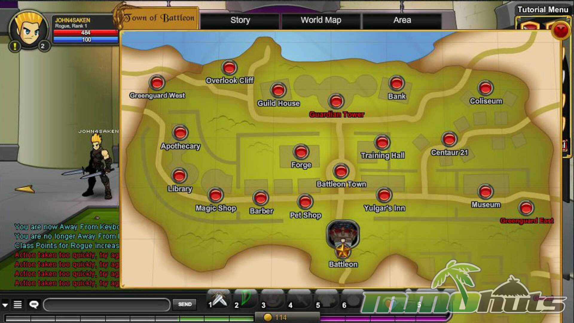 For players who want a break from questing, AQ Worlds includes instanced PvP with both 1v1 and 8v8 formats. Winning earns reputation and Combat Trophies, which can be traded for rewards like potions and scrolls. Joining is straightforward, you can queue up by talking to the NPC Tutorial Man in Battleon, making it easy to dip in and out without much setup.