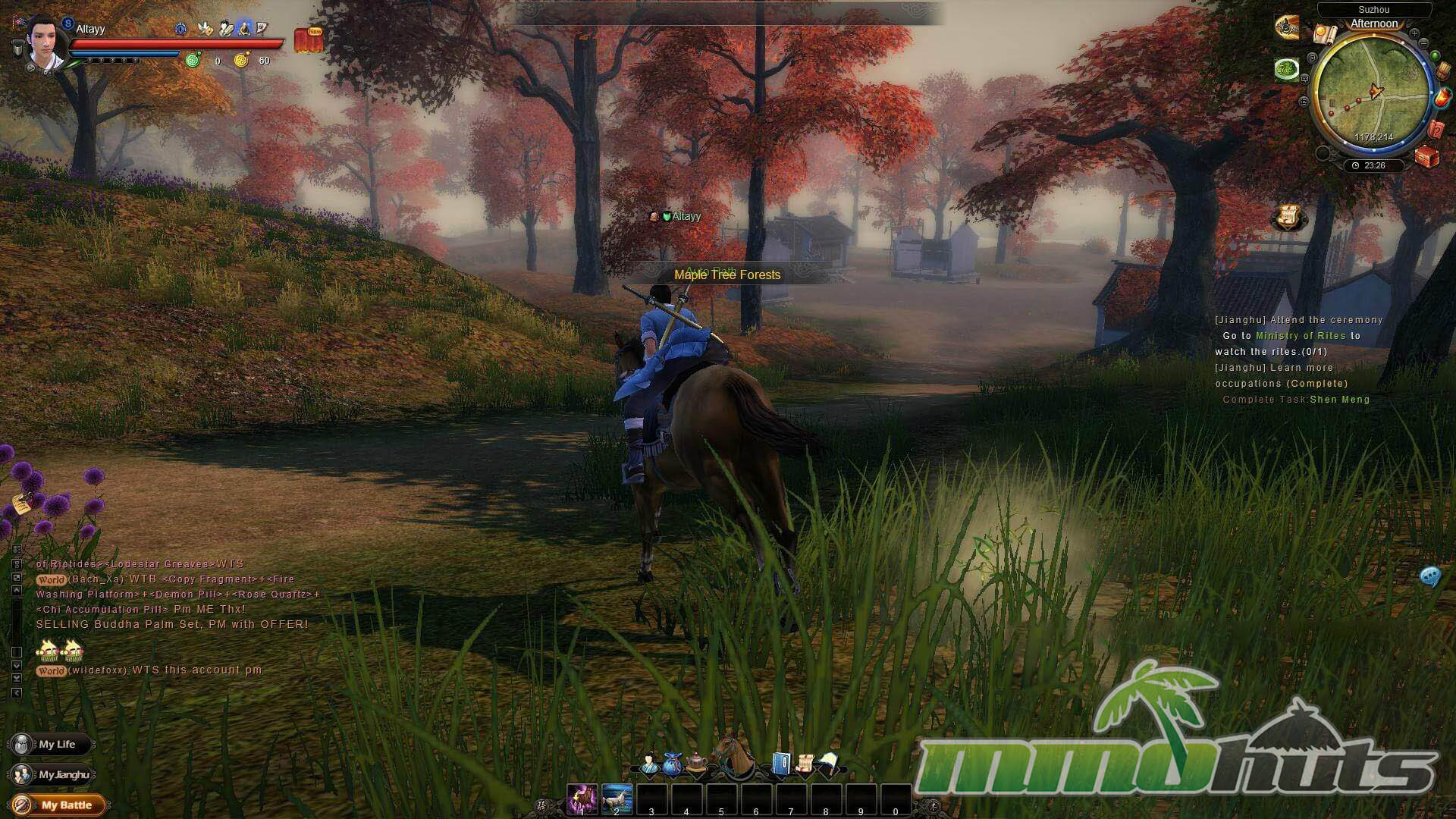 Outside of combat, the game also leans hard into professions. There are 17 in total, ranging from expected trades like blacksmithing and tailoring to more flavor-driven pursuits such as calligraphy, weiqi, hunting, woodcutting, fishing, and divination. Even begging is a viable path, supported by a school built around it, which is the kind of commitment to theme you rarely see in modern MMOs.