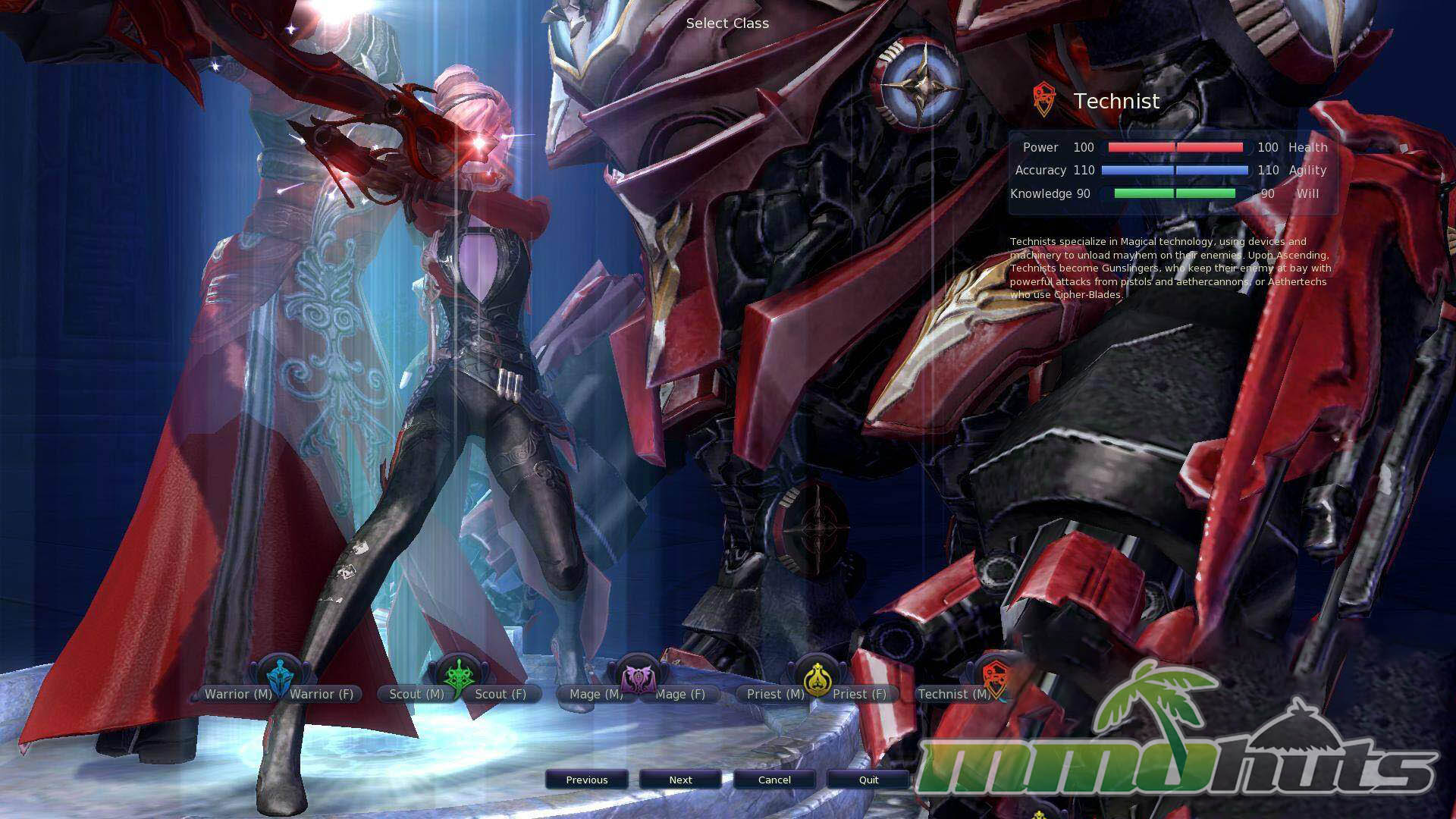 - Gunslinger – a burst-oriented DPS class using pistols and aethercannons, backed by multiple crowd control options.