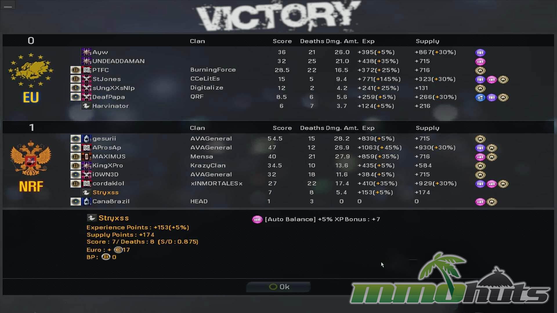 Progression is tied to two parallel tracks. First, you earn Euros (the free in-game currency) by playing, completing achievements, and finishing various objectives, then spend it on weapons, armor, and attachment parts. Second, you gain experience from match results to increase your rank, which acts as a gate for much of the arsenal, encouraging steady play over time rather than immediate access to everything. It is a simple loop, but it gives AVA a clear sense of momentum for players who enjoy collecting gear and refining a main loadout.