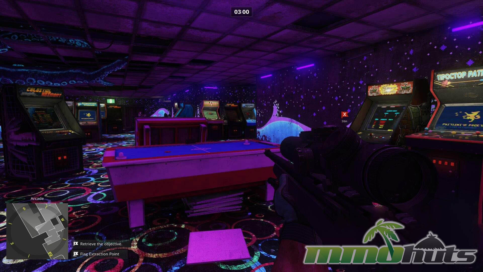 Map variety is one of the game’s strengths, and the rotation includes both tight and open spaces, from claustrophobic construction-like interiors to snowy, lodge-style environments with longer lanes. The game groups maps into BDX and FLO categories.