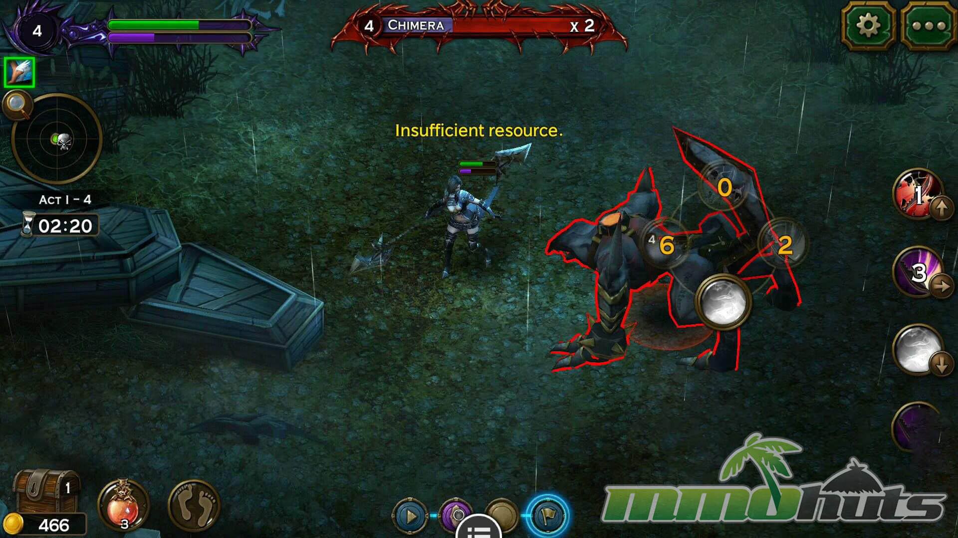 Upgrading is split between gold-based leveling and shard-based enhancement, so your progression is a combination of playtime, smart farming, and choosing which abilities deserve investment. The skill list covers a typical ARPG spread: single-target damage, area effects, debuffs, self buffs, healing options, and even summons that fight alongside you. Because gestures are simple directional swipes, the system remains readable and practical, even when your loadout gets more complex.