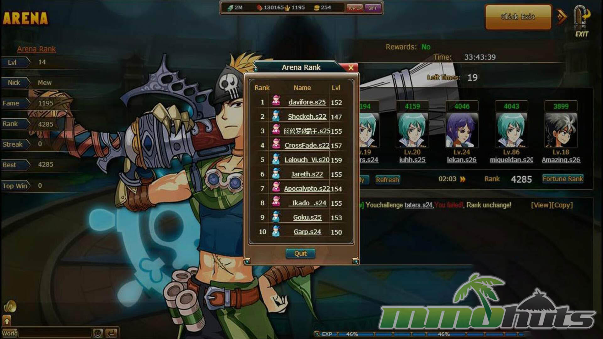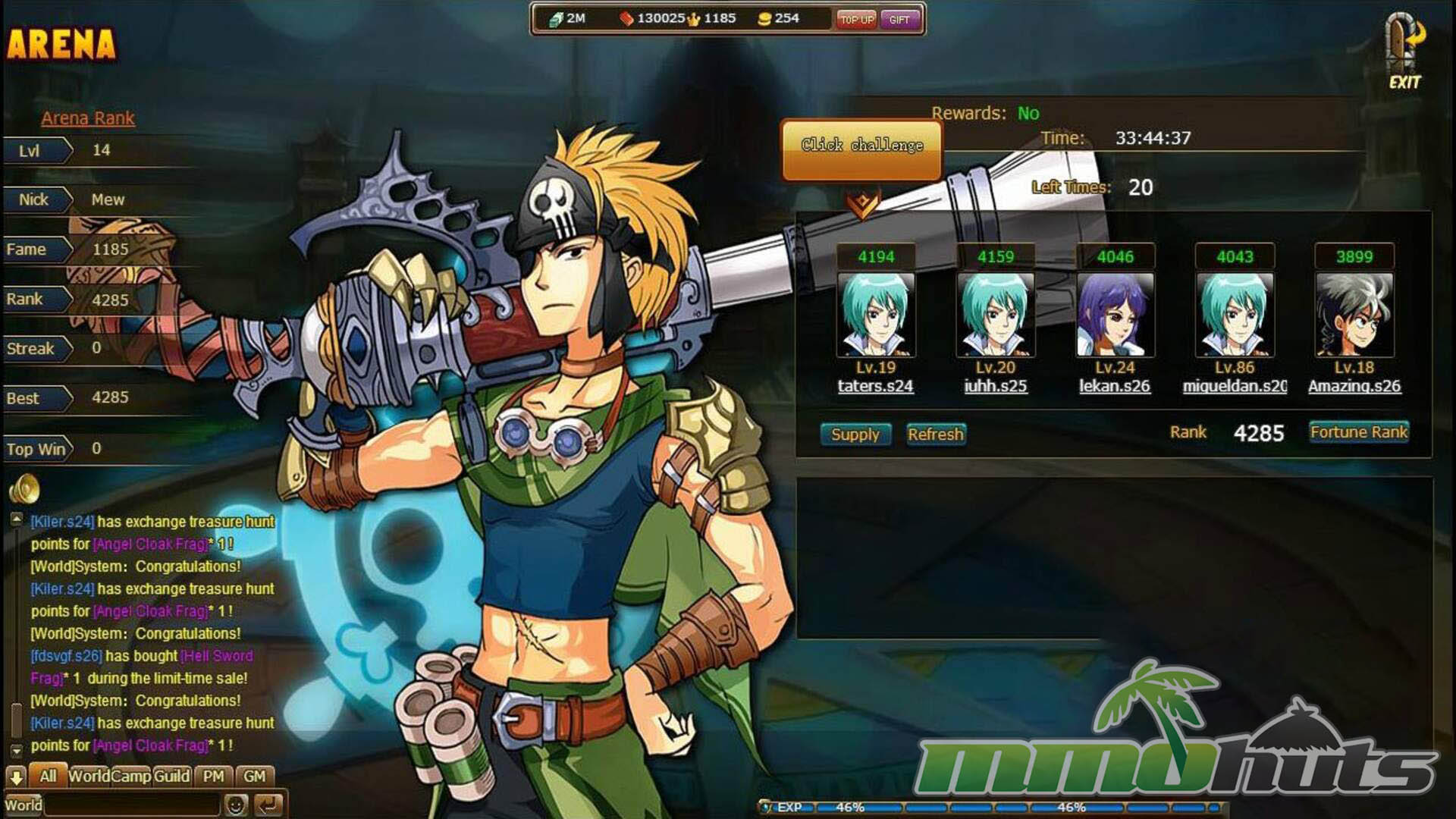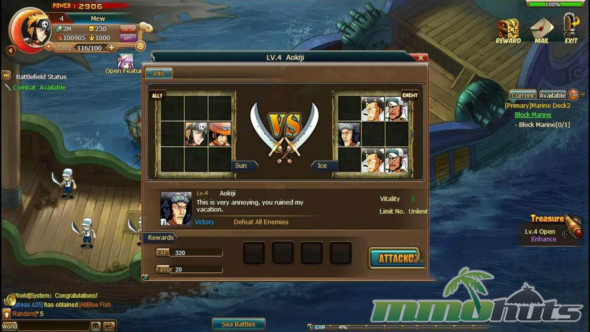 At the start, players picked one of six classes (Summoner, Sword Woman, Magician, Warrior, Gunner, or Archer), each modeled after familiar anime archetypes. From there, the game pushed you toward collecting and improving additional characters, then using them to tackle PvE content and, for those who wanted competition, a PvP arena. A standout feature for this style of browser MMO was the pirate ship hub, which acted as a central place to manage upgrades and reinforce the “crew” fantasy. Presentation was generally consistent for a Flash-based title, and the soundtrack did a lot of work in giving the game a more adventurous tone.