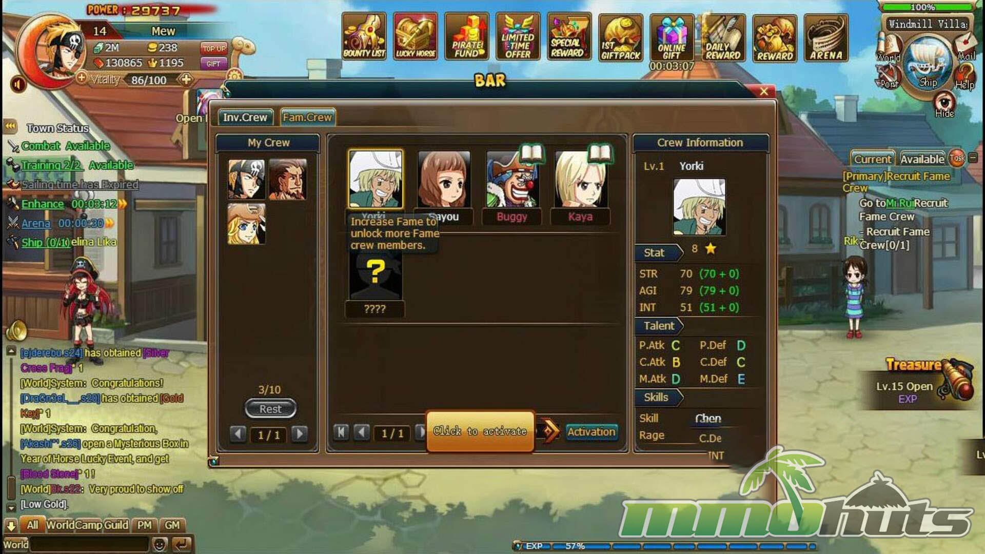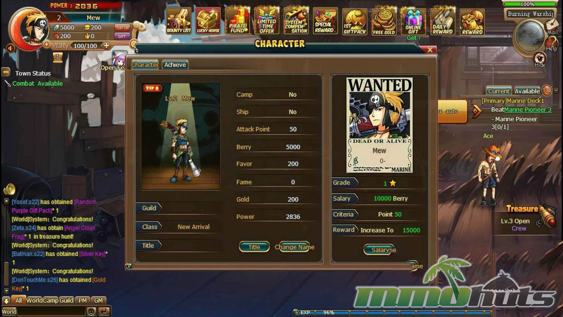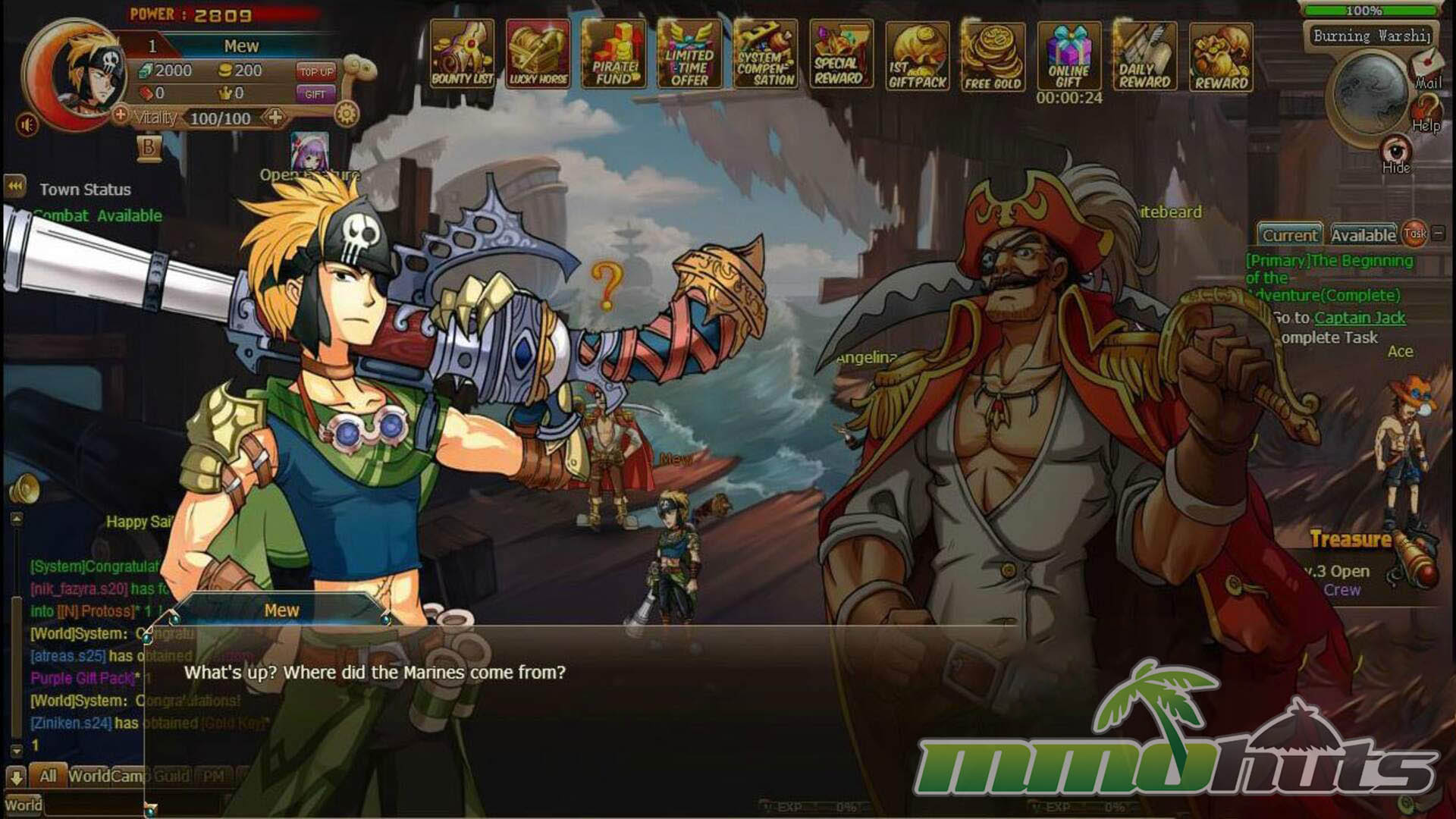 At the start, players picked one of six classes (Summoner, Sword Woman, Magician, Warrior, Gunner, or Archer), each modeled after familiar anime archetypes. From there, the game pushed you toward collecting and improving additional characters, then using them to tackle PvE content and, for those who wanted competition, a PvP arena. A standout feature for this style of browser MMO was the pirate ship hub, which acted as a central place to manage upgrades and reinforce the “crew” fantasy. Presentation was generally consistent for a Flash-based title, and the soundtrack did a lot of work in giving the game a more adventurous tone.