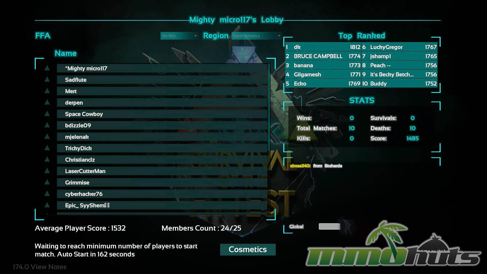 The game offered three main ways to queue: 2-player teams, 4-player teams, and Free-For-All. Each mode adjusts player counts and match length, and it also requires a minimum population before starting, which can lead to waiting in lobbies. After the lobby fills, there is still additional pre-match time before the action begins, so downtime can add up compared to faster-loading Battle Royale games.