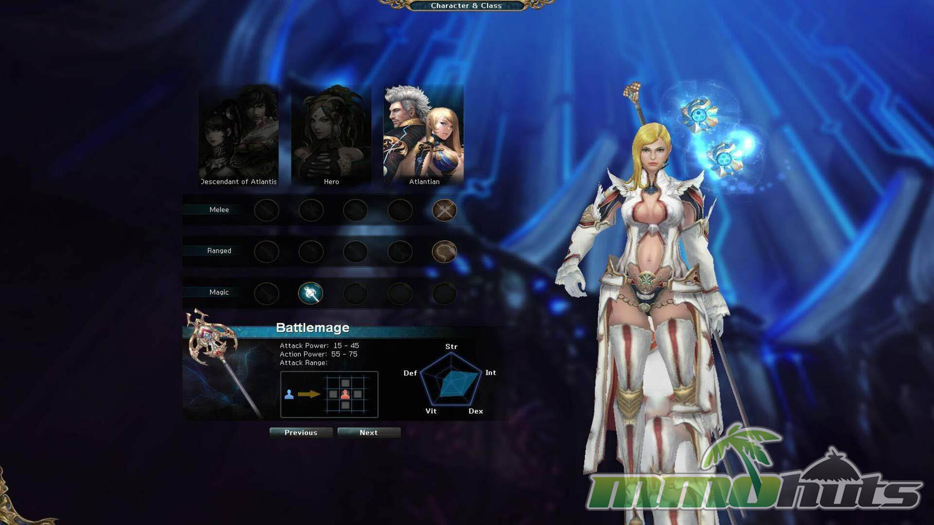 At the start you choose from three races. Descendants of Atlantis are the most flexible option with lower starting stats, Atlantians are stronger and more specialized, and Heroes begin at Level 30 but come with essentially no customization.