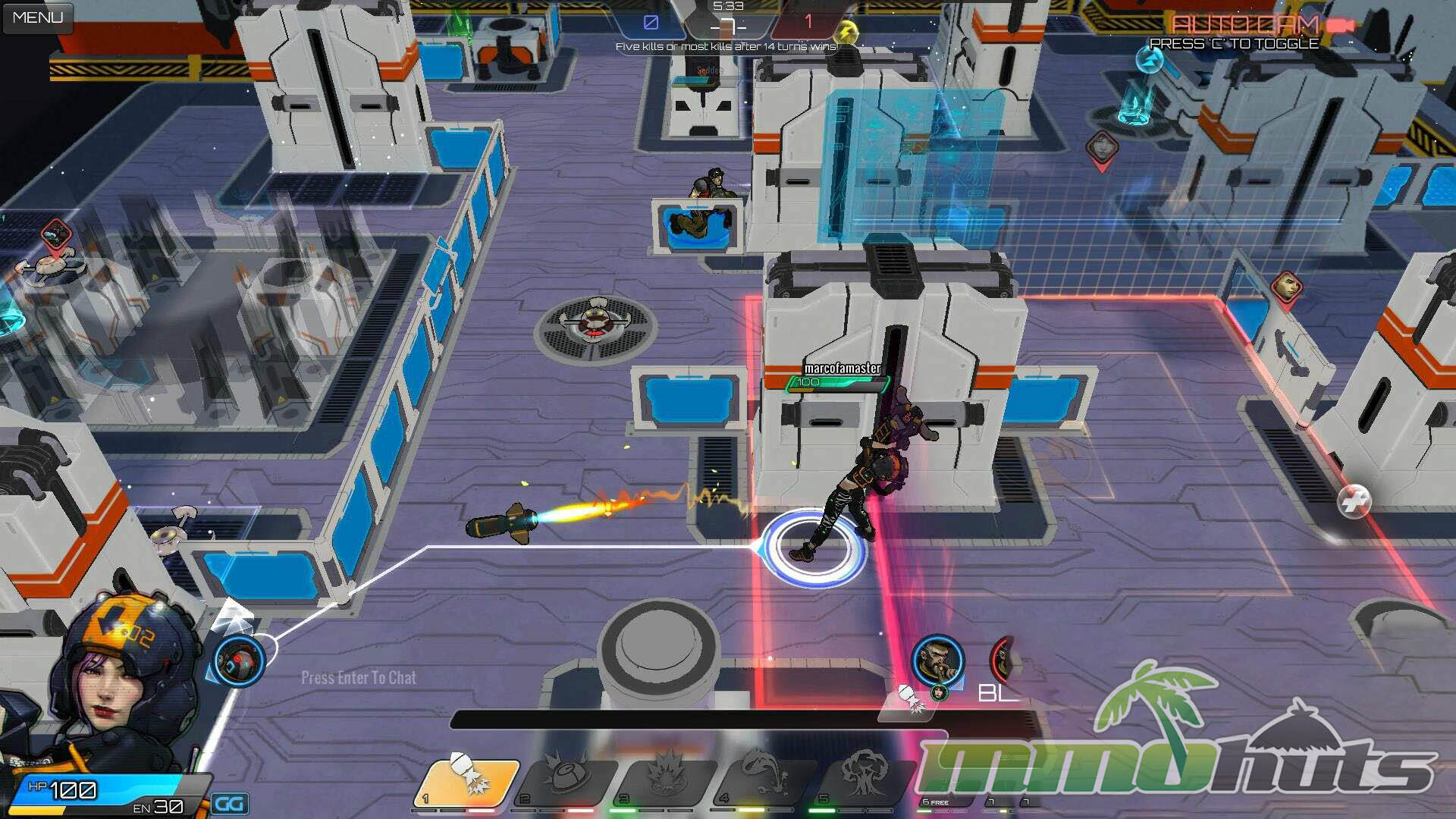 Modes: 1v1 – 5v5 Competitive / Bot Matches