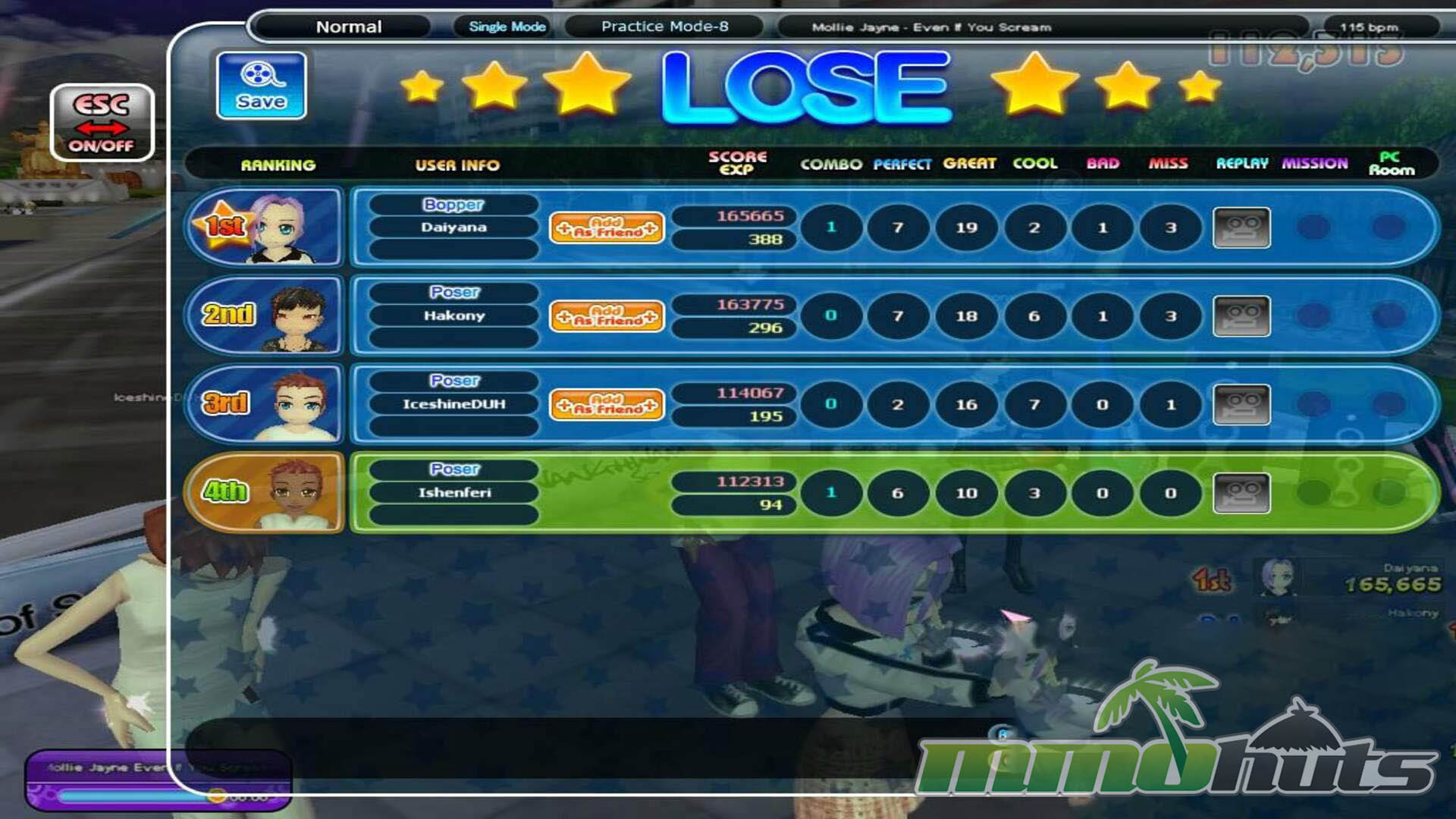 Moment to moment, Audition is engaging in short bursts, but the repetition can set in if you are not motivated by mastery. Players who do not invest time into learning both 4-key and 8-key approaches will hit a wall, since higher level play expects fast, accurate input under pressure. Scoring is based on timing precision and the game grades your hits across five tiers: Perfect, Great, Cool, Bad, and Miss. Consistency matters as much as raw speed, a single sloppy section can drag down an otherwise strong run.