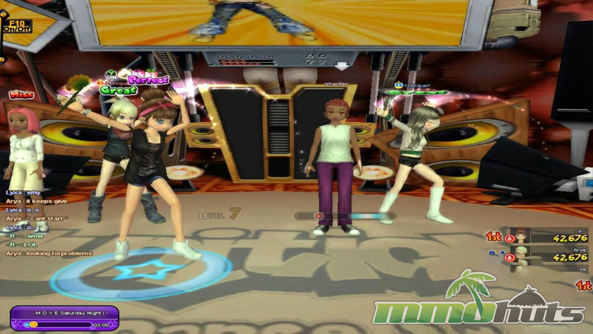 Choreography focuses on synchronization. Everyone performs the same commands and the goal is clean, unified execution rather than personal expression. There is no Freestyle section, and missing a measure comes with a penalty that can force you to sit out the next move, which makes mistakes feel costly in score-focused rooms.