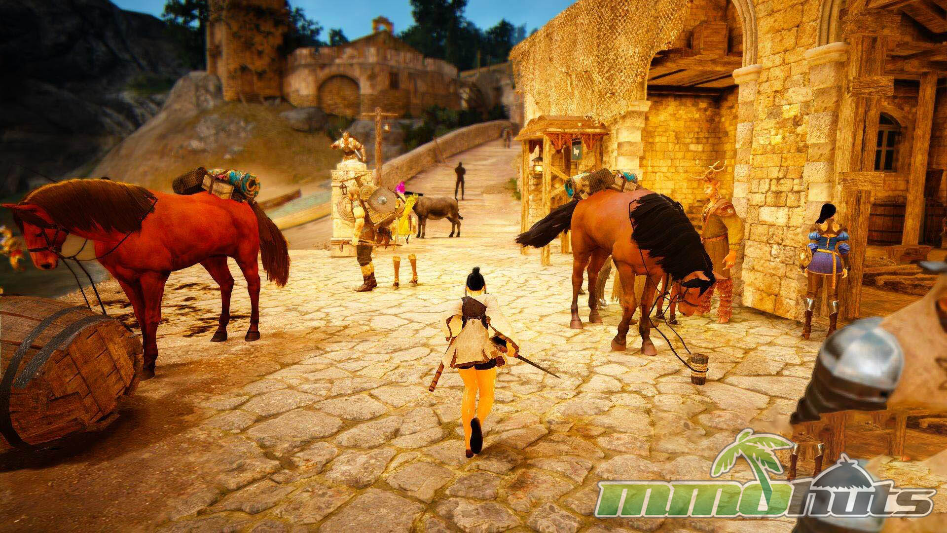 Beyond fighting, the game’s economy and world progression are major pillars. You can purchase property in towns, set up production through workers, and connect areas with trade routes to turn raw materials into profit. NPC interaction is also more involved than typical “click and accept quest” loops, with systems that reward learning about the world and building relationships. Guild play expands into organized PvP, including large battles for control of territory and resources. If you prefer exploration, the world includes coastal waters and island chains you can reach by sea once you invest in a vessel.