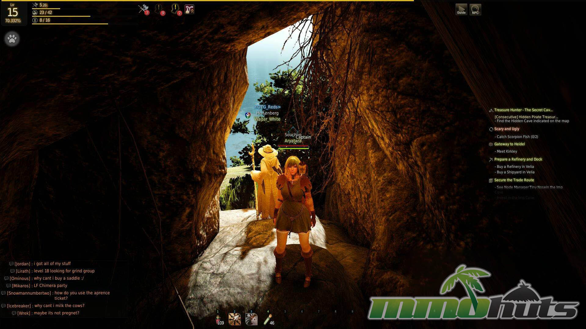 Beyond fighting, the game’s economy and world progression are major pillars. You can purchase property in towns, set up production through workers, and connect areas with trade routes to turn raw materials into profit. NPC interaction is also more involved than typical “click and accept quest” loops, with systems that reward learning about the world and building relationships. Guild play expands into organized PvP, including large battles for control of territory and resources. If you prefer exploration, the world includes coastal waters and island chains you can reach by sea once you invest in a vessel.