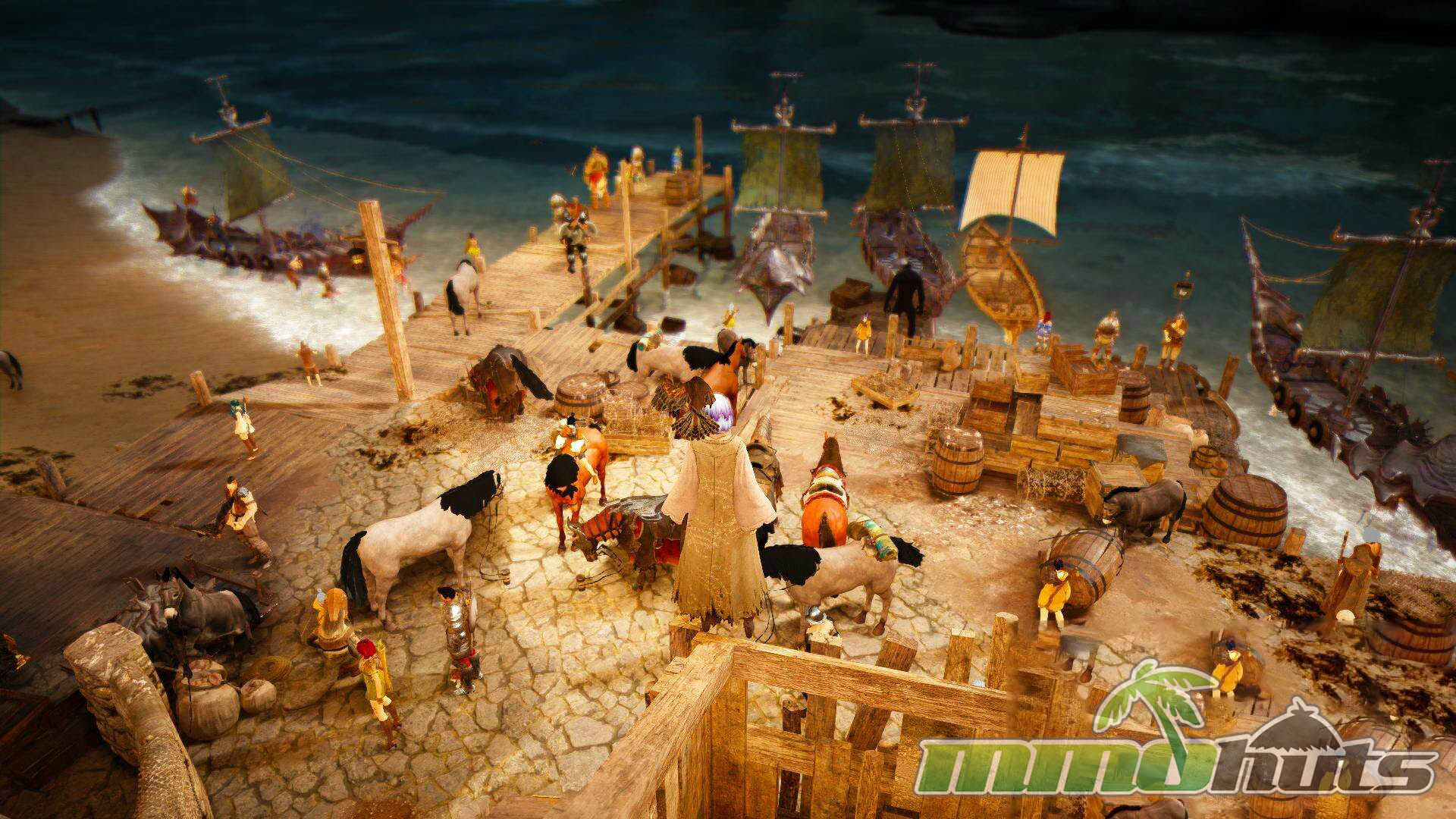 Beyond fighting, the game’s economy and world progression are major pillars. You can purchase property in towns, set up production through workers, and connect areas with trade routes to turn raw materials into profit. NPC interaction is also more involved than typical “click and accept quest” loops, with systems that reward learning about the world and building relationships. Guild play expands into organized PvP, including large battles for control of territory and resources. If you prefer exploration, the world includes coastal waters and island chains you can reach by sea once you invest in a vessel.