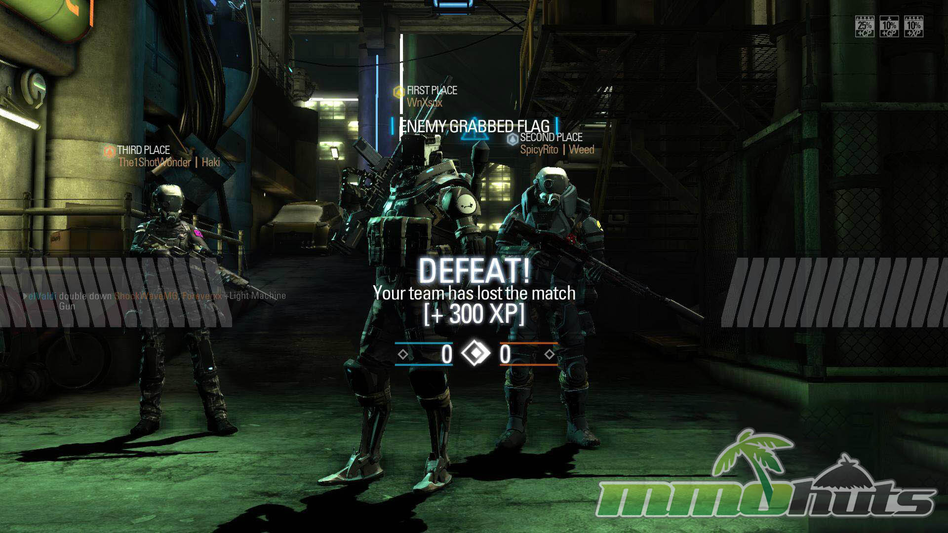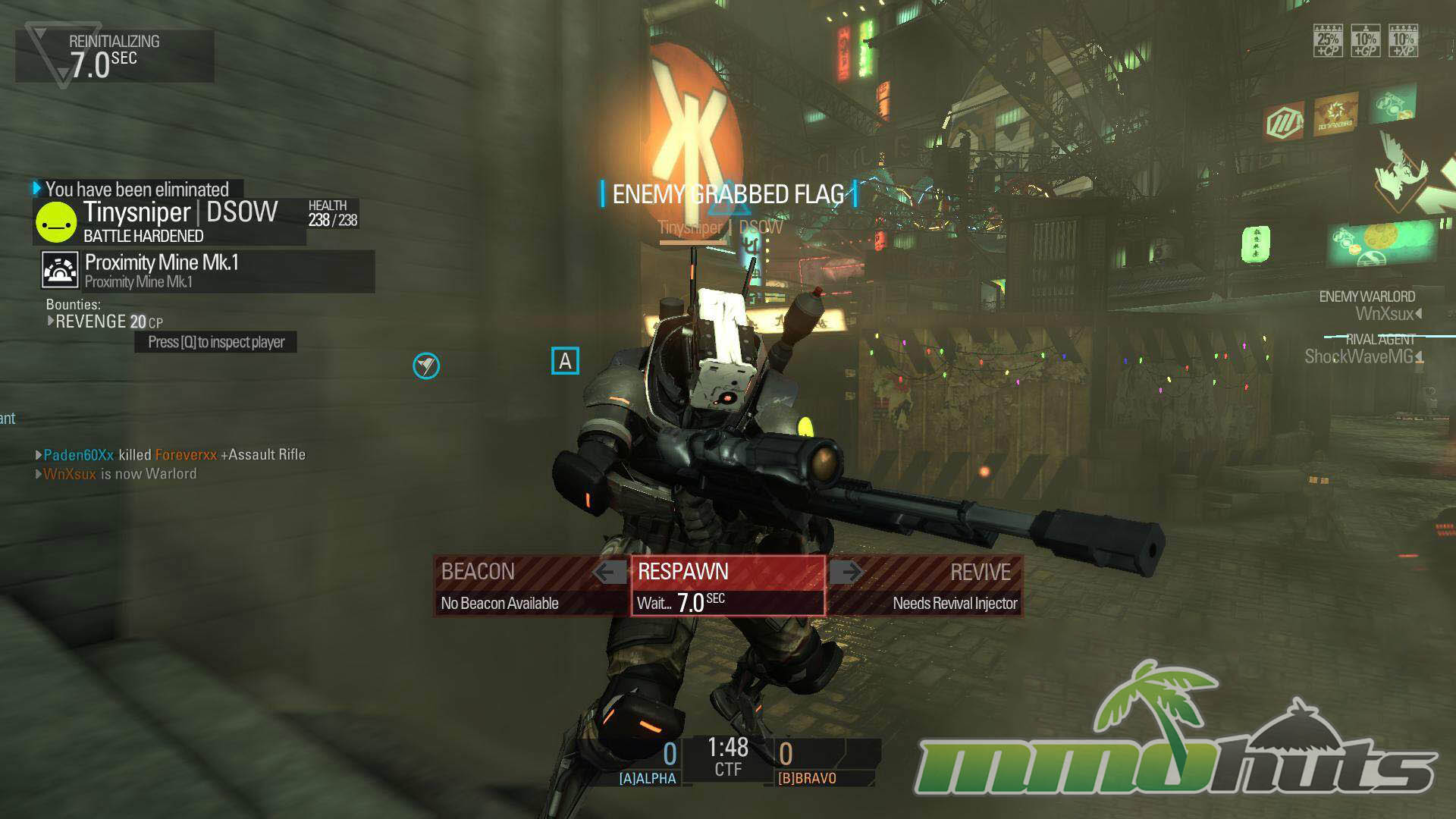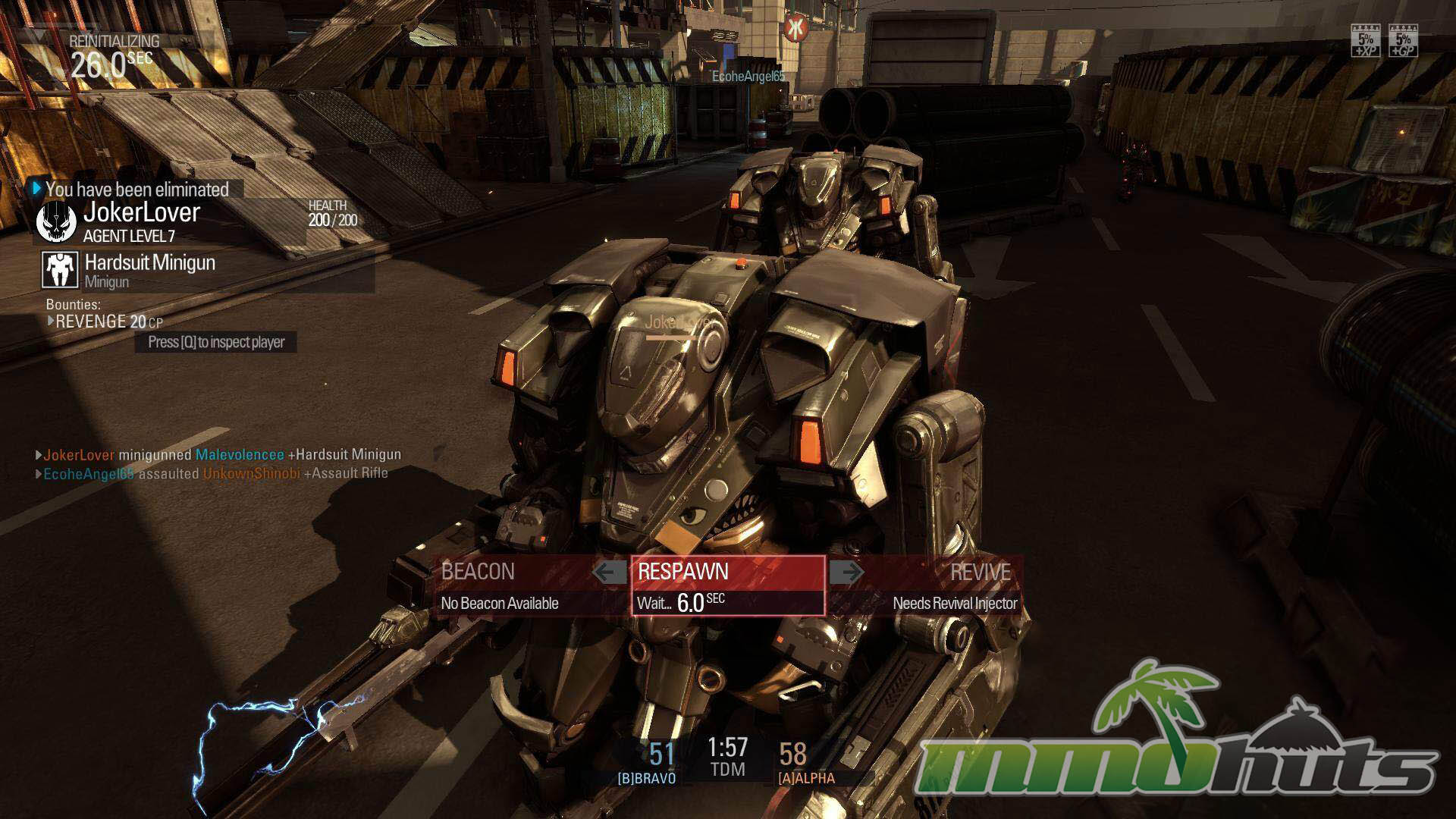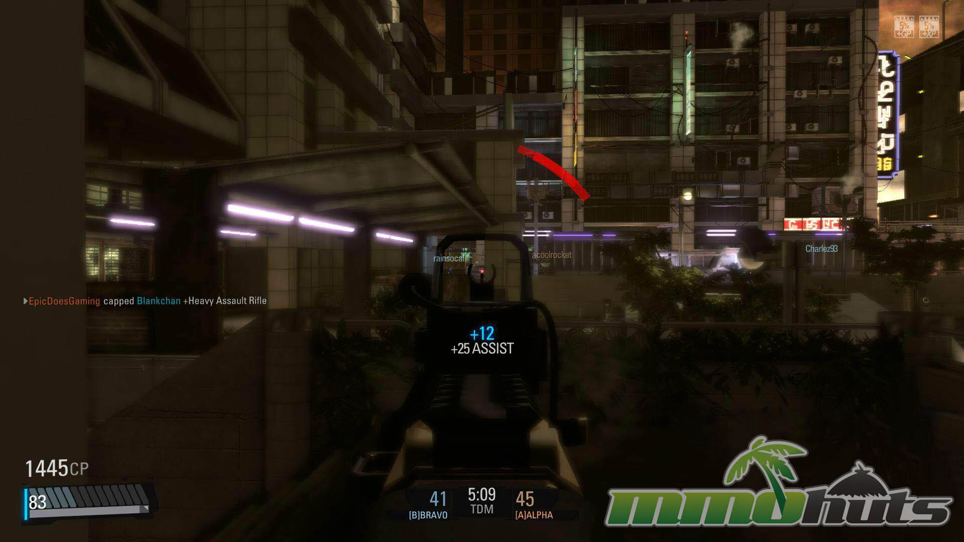 Progression revolves around building loadouts, unlocking and renting or buying parts, and gradually working toward permanent purchases. Premium currency (Zen) offered a quicker path to permanent weapons and removed some level restrictions, while patient players could still earn gear with standard in-game currency over time. During matches, players also build Combat Points (CP) that can be spent at weapon depots for powerful temporary tools, including airstrikes and the iconic Hardsuit mech.