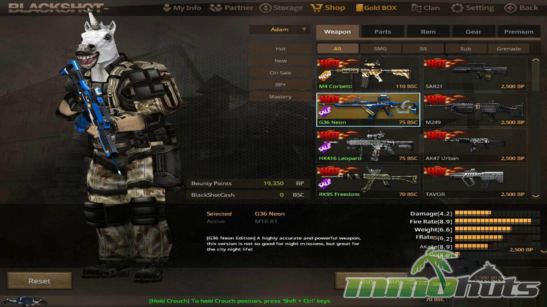 Blackshot’s biggest friction point is its weapon economy. Outside of your starter gear, most firearms are rented from the shop using either Bounty Points (BP), earned through play, or Bounty Cash (BC), purchased with real money. It is helpful that many weapons can be acquired with BP, but the rental periods are unusually segmented, with options commonly tied to hours rather than longer blocks like days or weeks.