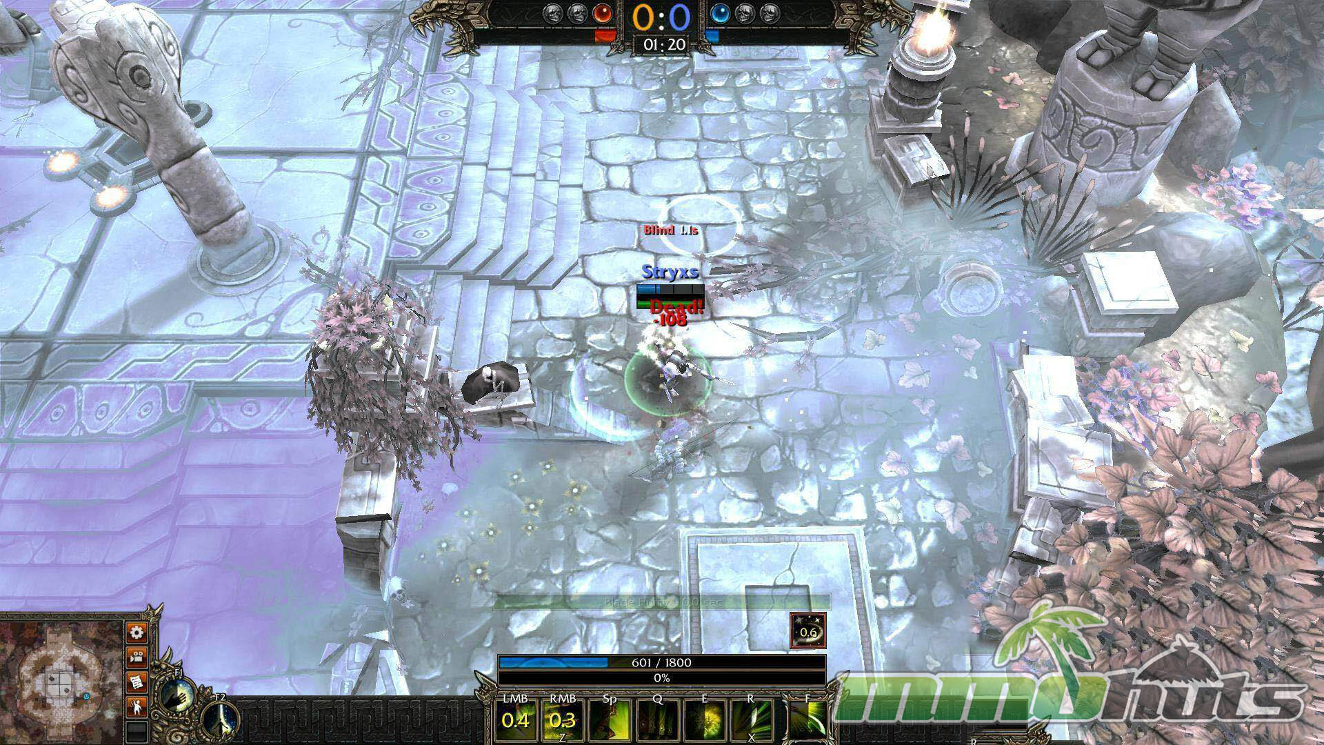 Moment to moment, combat is built around mobility and precision. Movement uses WASD, while aiming and ability placement are controlled with the mouse. Because nearly every action requires manual targeting, the game feels closer to a twin-stick shooter translated into a MOBA camera than it does to traditional point-and-click ability systems. Each Bloodline has six standard abilities plus an ultimate, along with a basic left-click attack and a stronger right-click option with a short cooldown. The spacebar is commonly tied to evasive or escape tools, while Q, E, F, and R handle the heavier-impact skills with longer cooldowns.