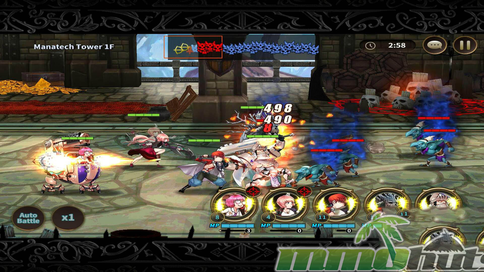 In terms of modes, the package is fairly complete for its era. Adventure stages give you the main ladder of progression, daily dungeons provide targeted farming, raid bosses offer a cooperative goal, and the manatech tower works as a steady challenge track. None of these modes radically reinvent the genre, but they are enough to break up the routine and give you reasons to keep refining your roster.