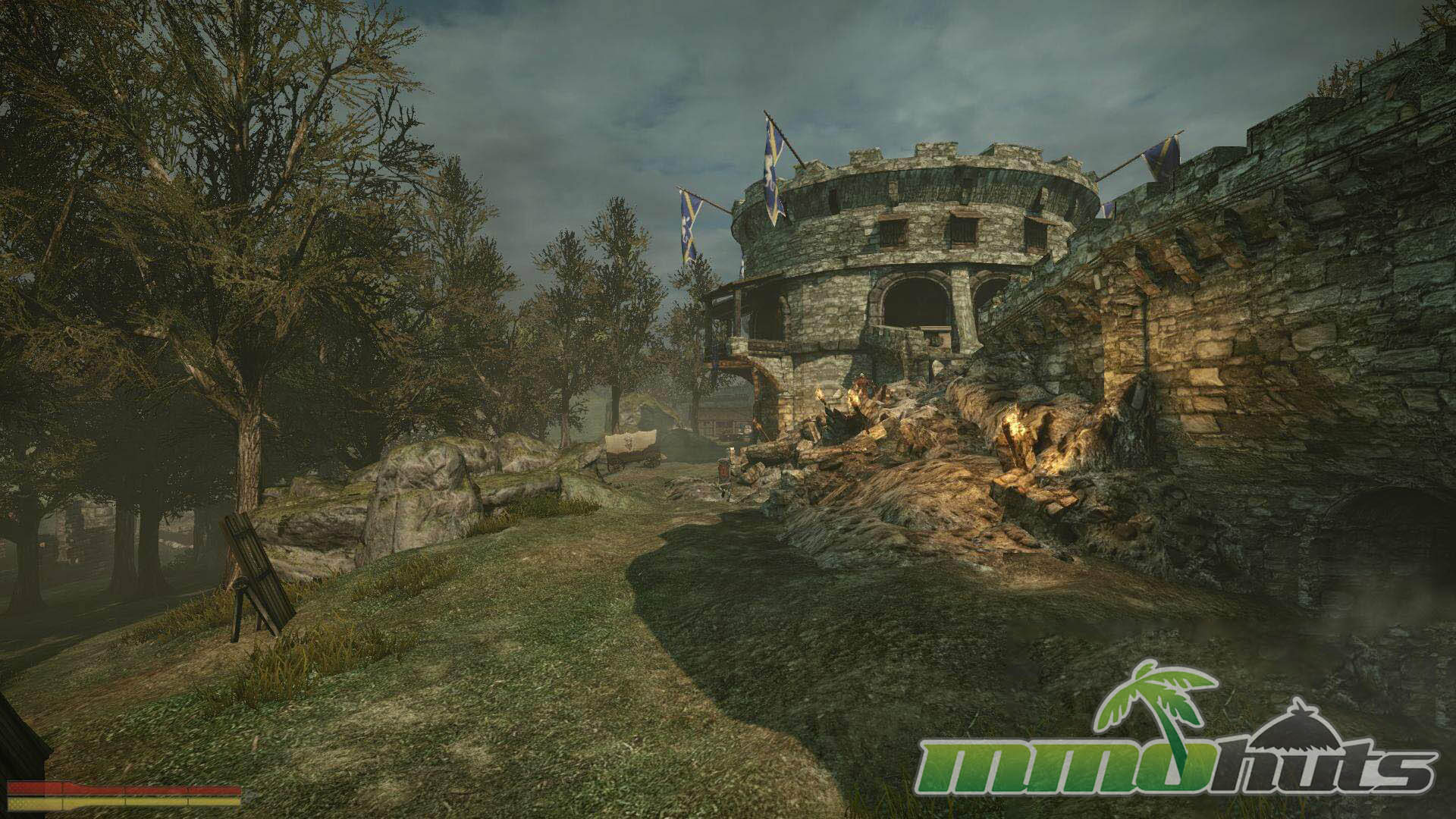 Built on Unreal Engine 3, Chivalry is not a modern visual showpiece, but its maps do a good job selling a harsh, battered world. Locations range from brighter outdoor spaces to darker woodland and fortress environments, and they generally read well in motion, which matters when you are trying to track blades, bodies, and projectiles in a crowd. The game’s signature is the sheer amount of gore, and it is presented in a way that often feels intentionally exaggerated. Dismemberment and decapitations are frequent, and the absurdity helps keep the tone from becoming oppressive, even as the fights remain brutal.