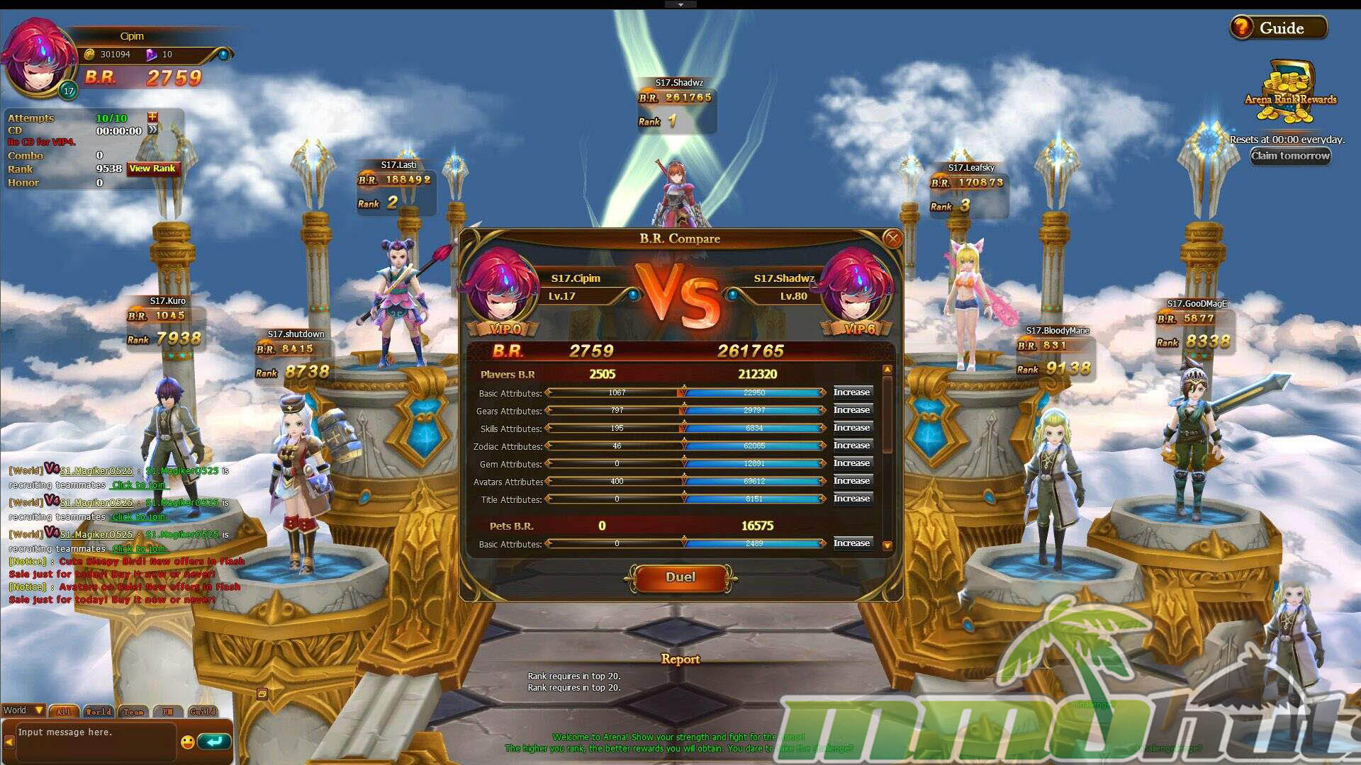 - PvP Arena – climb the ladder in arena battles where battle rating matters, but smart play and timing can still influence outcomes.