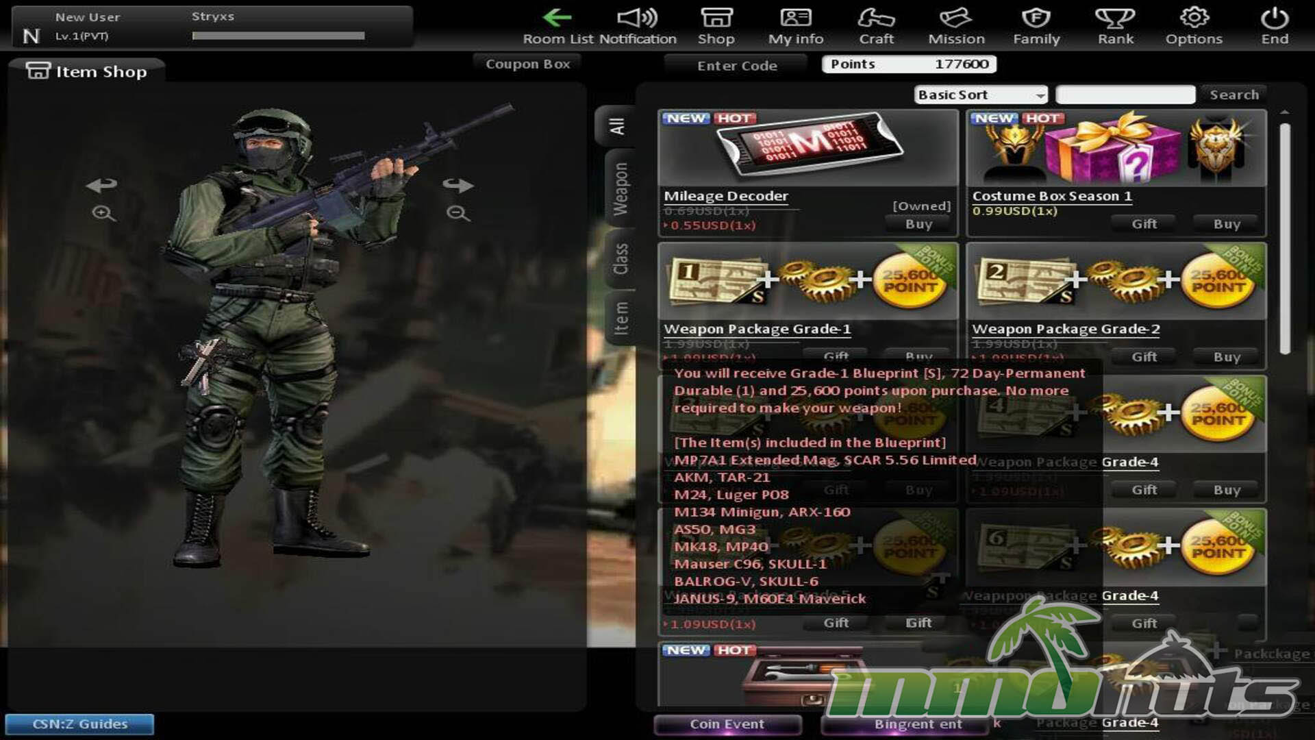 Where CSN:Z becomes more divisive is item acquisition. You get the classic Counter-Strike weapons as a baseline, which is a strong starting point. Many of the more unusual or powerful weapons, however, are tied to events, real-money purchases, or crafting rolls. Crafting uses materials and blueprints to produce a random weapon with a limited duration, and you can enhance materials or disassemble unwanted items to feed the system. It is functional, but also inherently luck-driven, which can be frustrating if you prefer direct, point-based purchases over gambling on outcomes. Popularity-wise, it never reached the same prominence as Counter-Strike: Global Offensive in the West, and it also does not match the dominance of some major Asian FPS competitors.