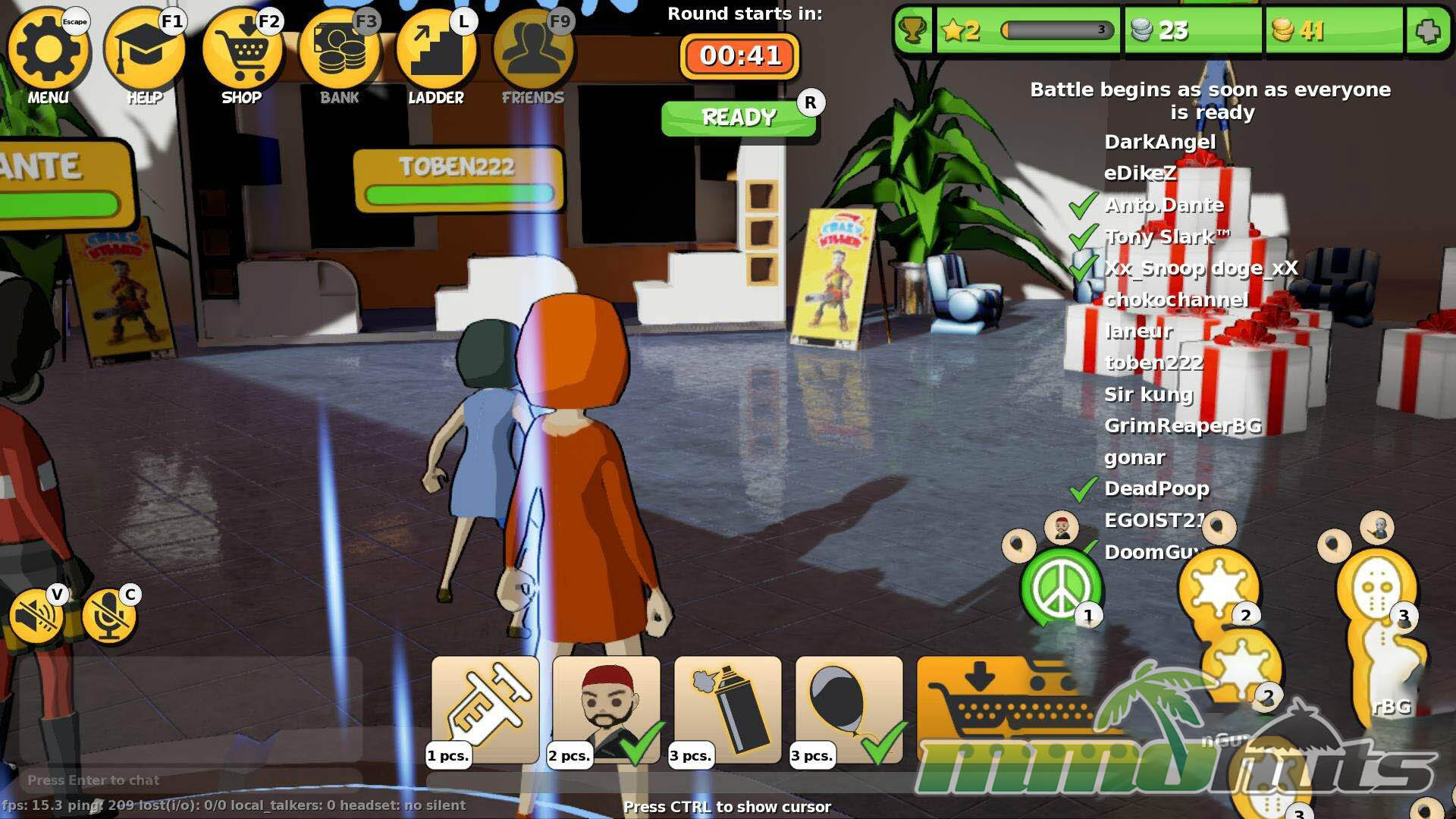Matches play out as you roam the map, approach other players, and decide who to trust. The game leans heavily on bluffing, misdirection, and opportunism, with tools and interactable items offering ways to attack, defend yourself, or create distractions. Outside of the core rounds, Crazy Killer includes cosmetic skins, role-based abilities, a friends feature for grouping up, plus an in-game shop and a bank system for managing currency.