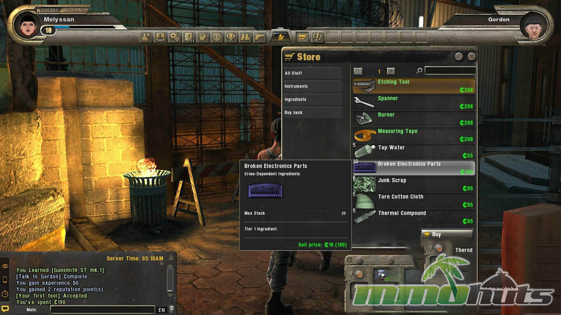 Crafting is handled through profession leveling. As you create items, your profession rank increases, and higher ranks open up more advanced recipes. It is a simple loop, but it gives the economy a purpose and provides another path to improve your loadouts beyond pure drops or purchases.