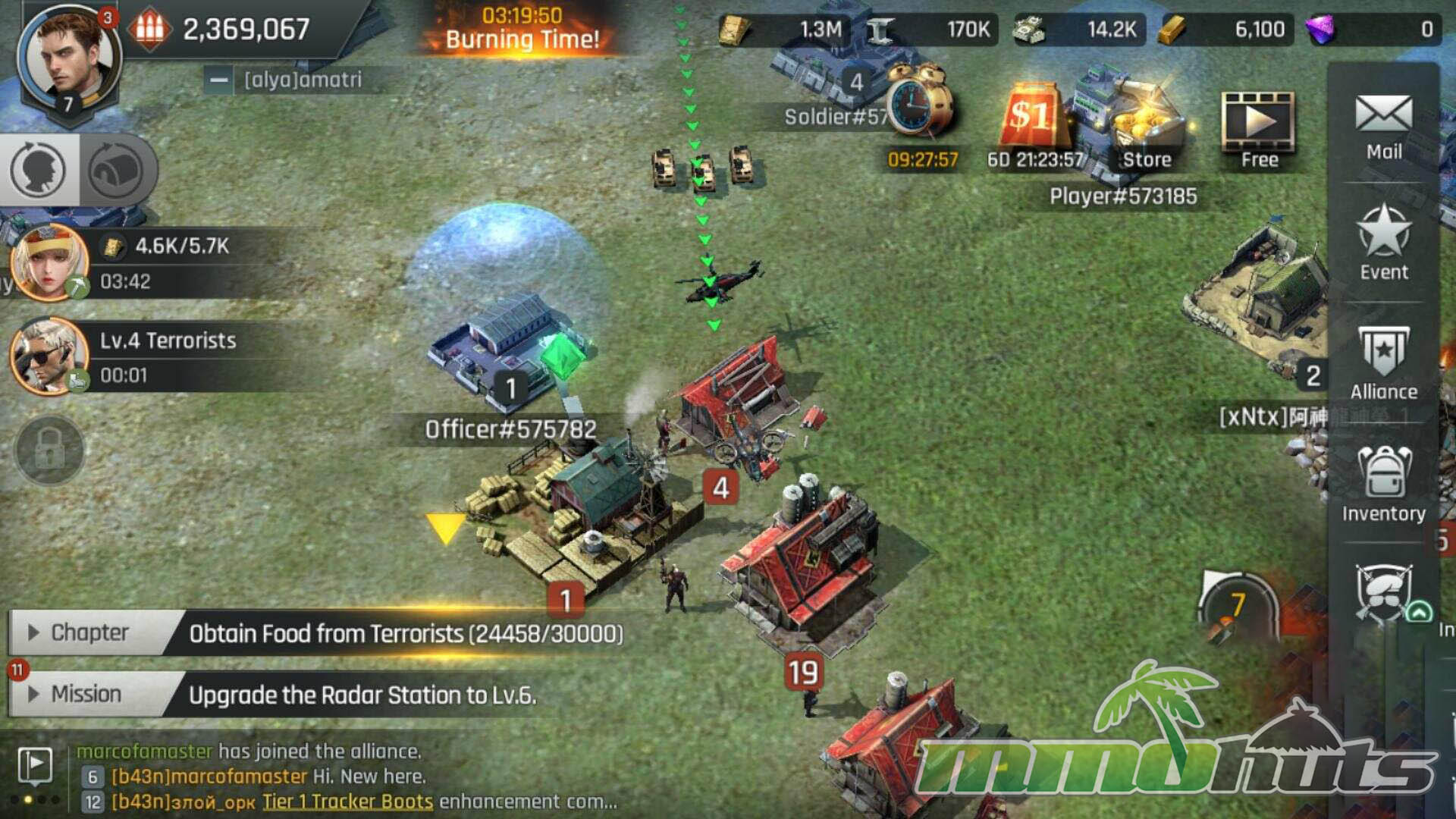 • Real-Time Map Actions – raid terrorist positions, challenge world bosses, or attack other commanders to collect resources, boosts, and useful items.