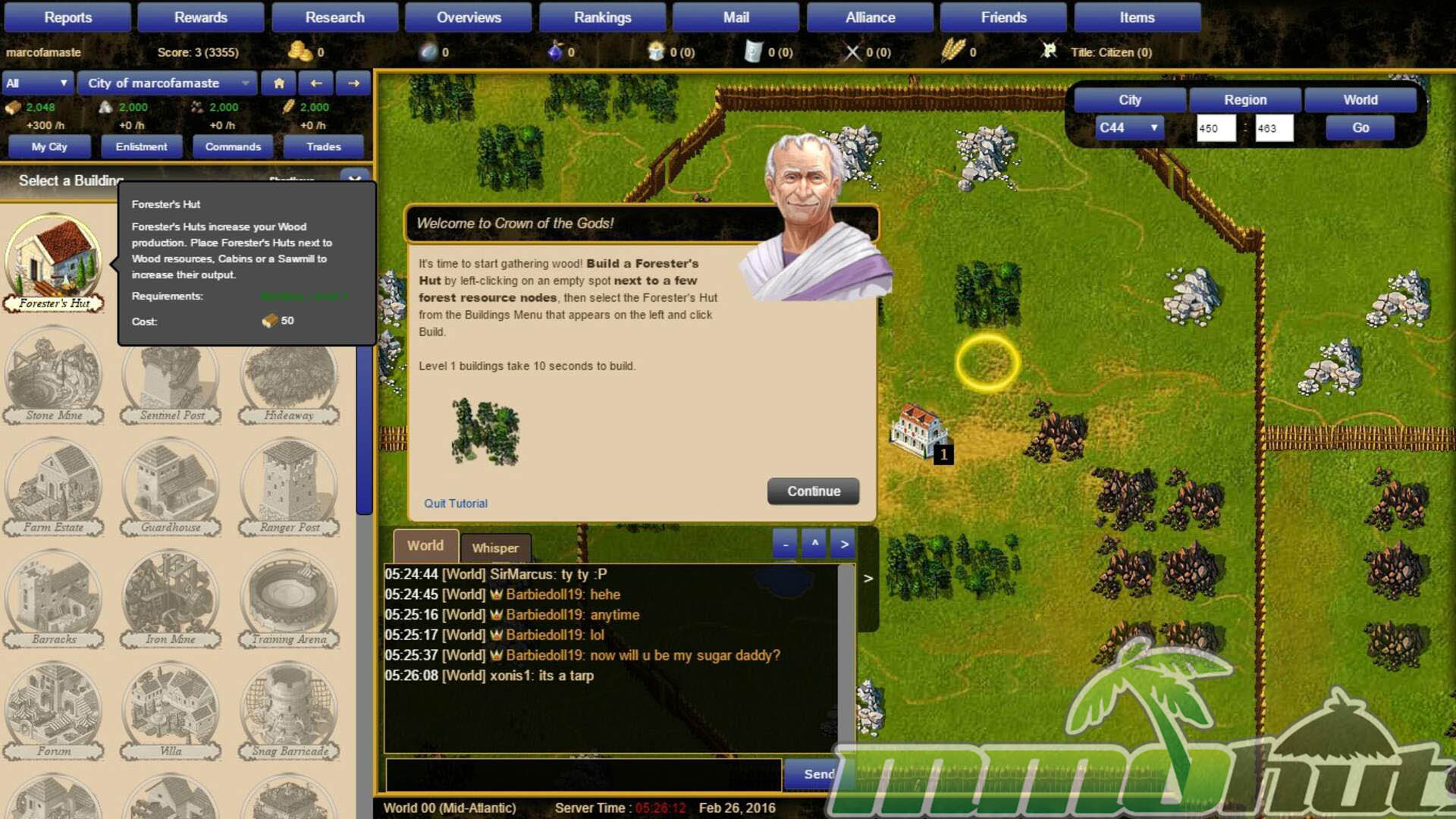 Crown of the Gods is a free-to-play, 2D browser MMO centered on city management and long-term strategy. Set in a Roman themed world, it casts you as an up-and-coming governor tasked with growing a modest settlement into a multi-city empire through real-time construction, resource production, and army recruitment, all while competing with other players on persistent PvP servers.
