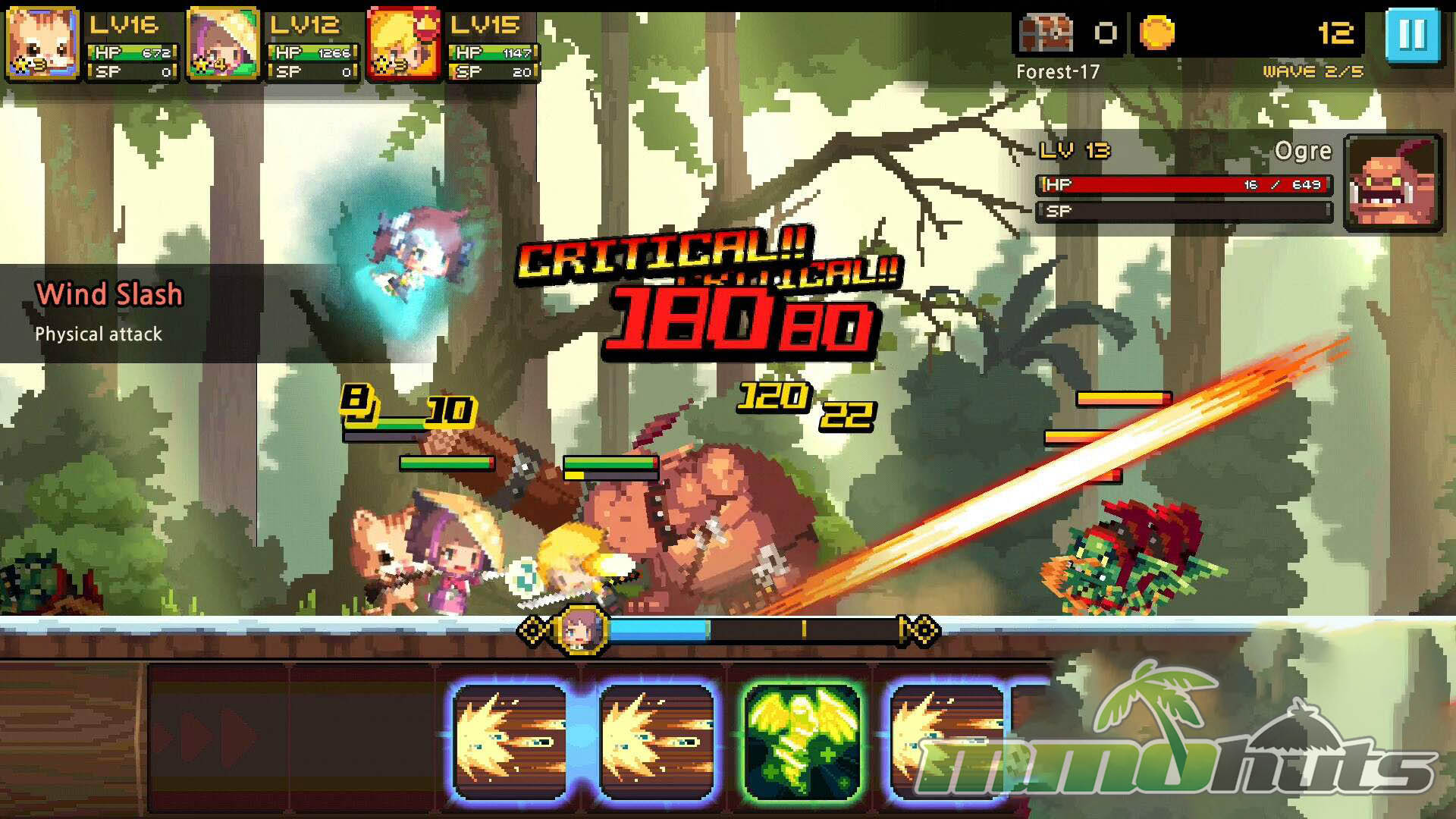 Crusaders Quest’s biggest strength at first glance is its presentation. The retro, 16-bit style is colorful and expressive, and the sprite work gives Heroes and enemies a lot of personality despite the pixel scale. Costumes and silhouettes are distinct enough that you can quickly recognize roles, from armored front-liners to robed casters, and the game leans into anime-inspired charm without becoming visually noisy.