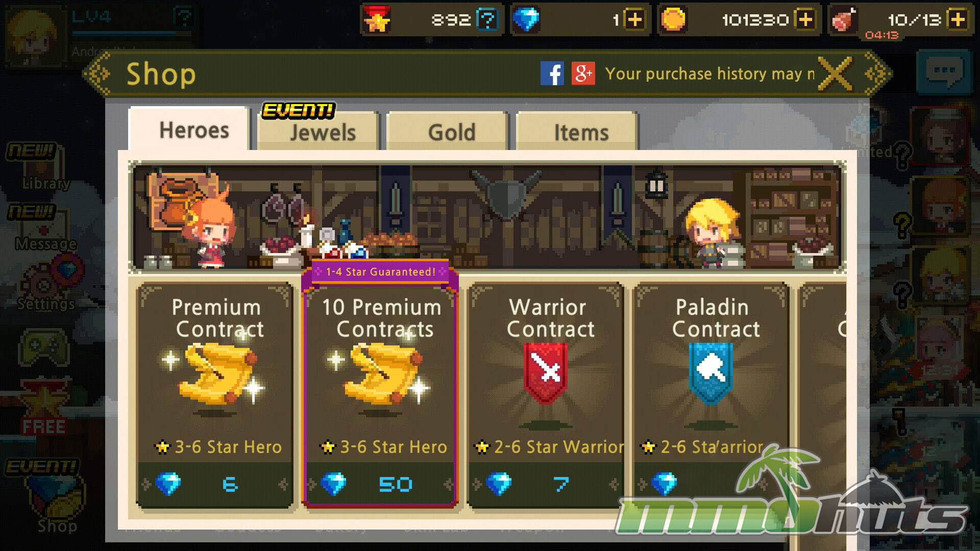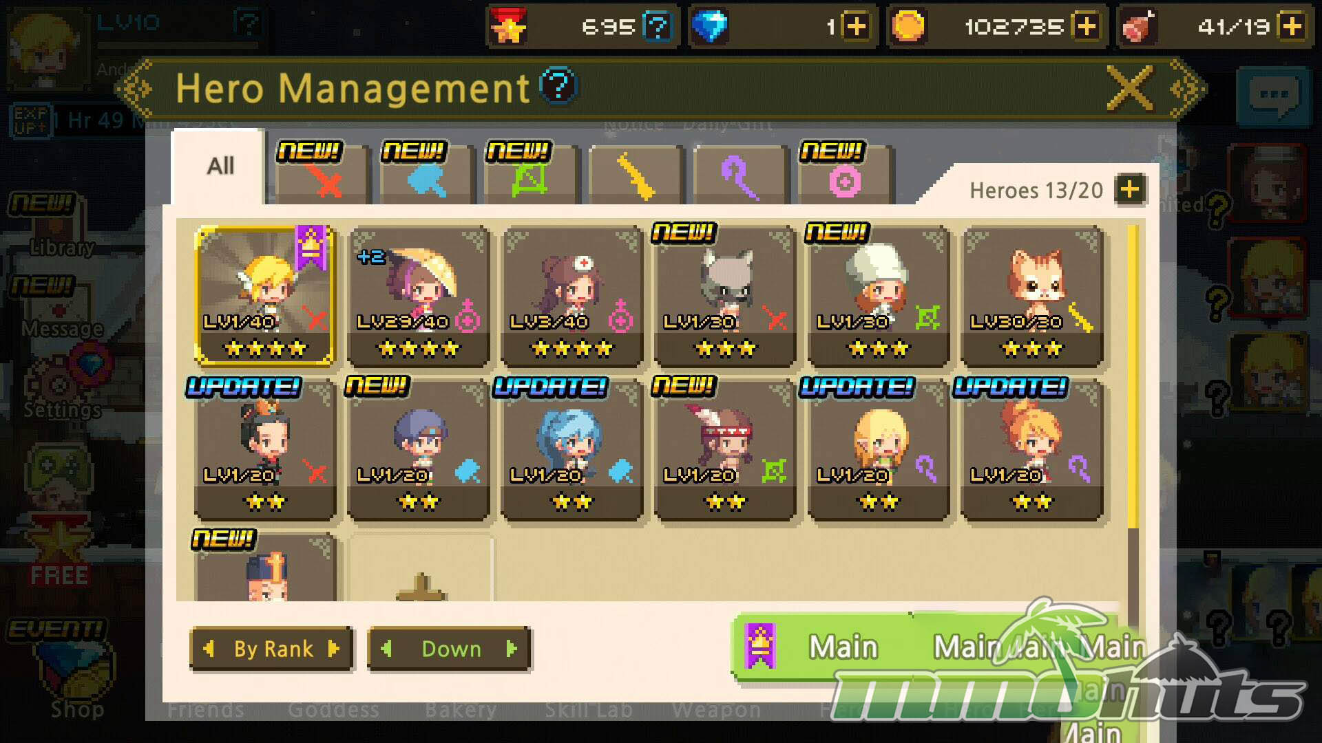 | Publisher: NHN Entertainment Playerbase: High Type: Mobile RPG Release Date: December 11, 2014 Pros: +Adorable retro pixel presentation. +Huge roster of Heroes to recruit. +Story and dialogue are more engaging than expected. +Distinctive, puzzle-like combat pacing. Cons: -Can feel repetitive over long sessions. -Progression leans heavily on farming and grind. |