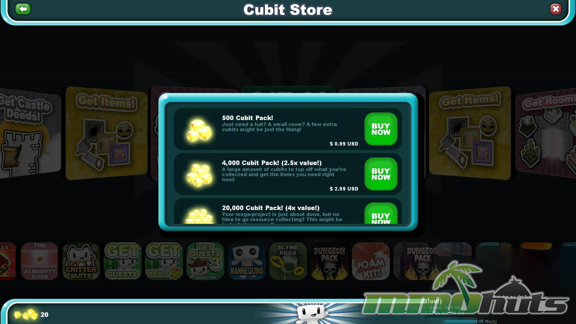 Cubic Castles also leans heavily into trading. If you prefer commerce over parkour design, you can run a shop world and sell materials or rare finds for currency, then use those profits to buy more blocks, cosmetics, and utility items to expand your realm and its appeal.