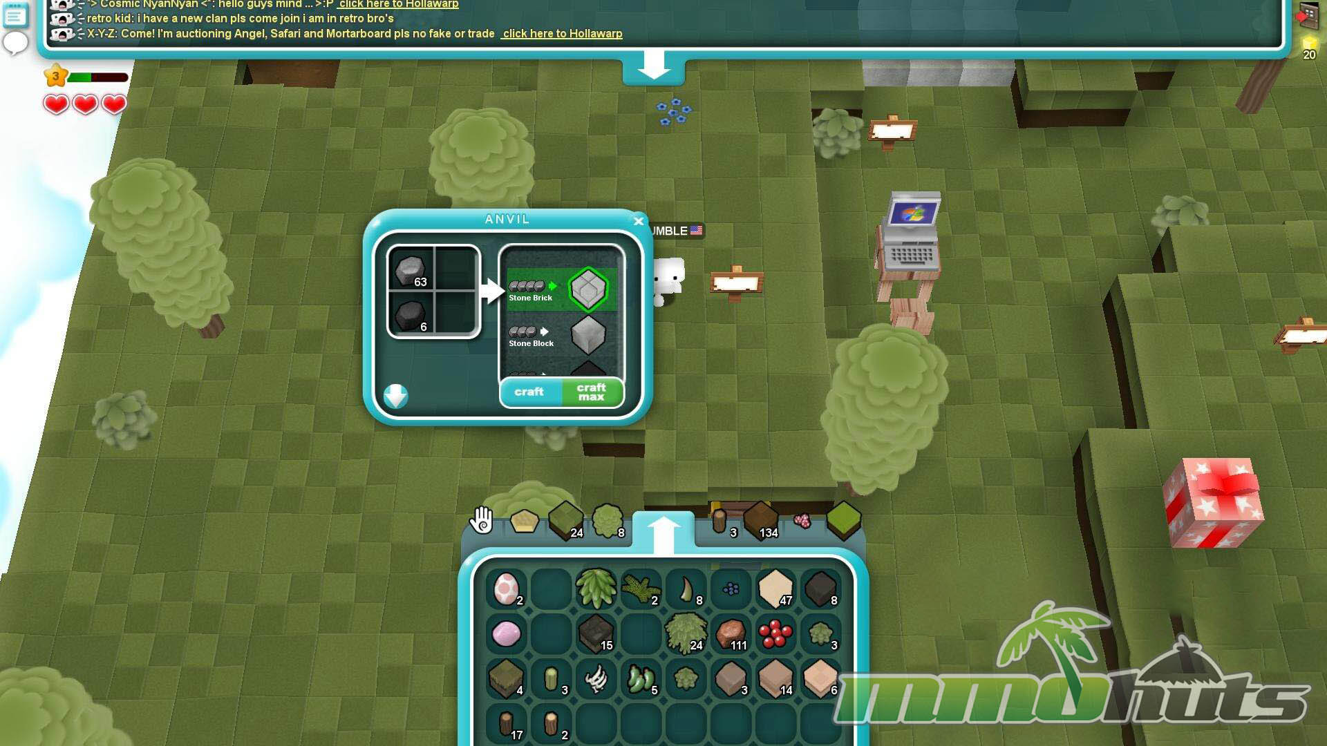 Pros: +Active player-driven trading and shops. +Straightforward building and crafting tools. +Lots of unusual blocks and gadgets for platformer-style realms.