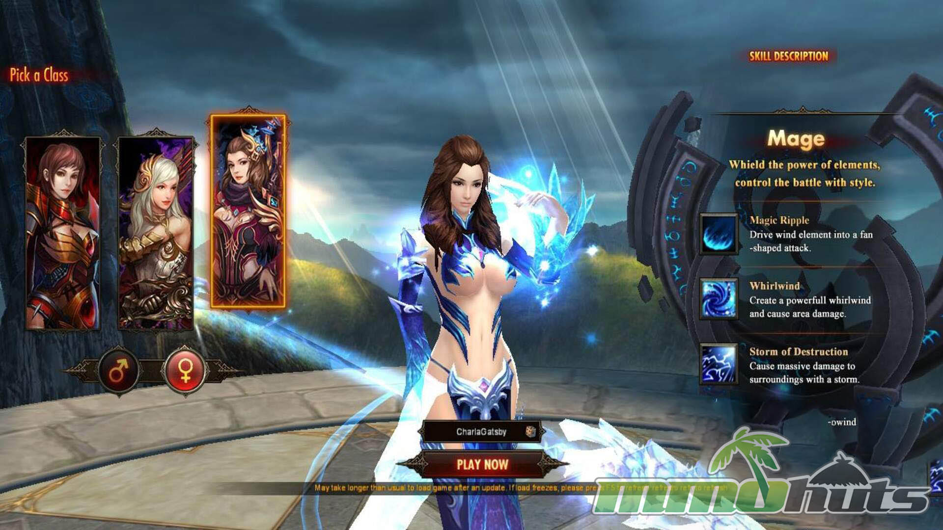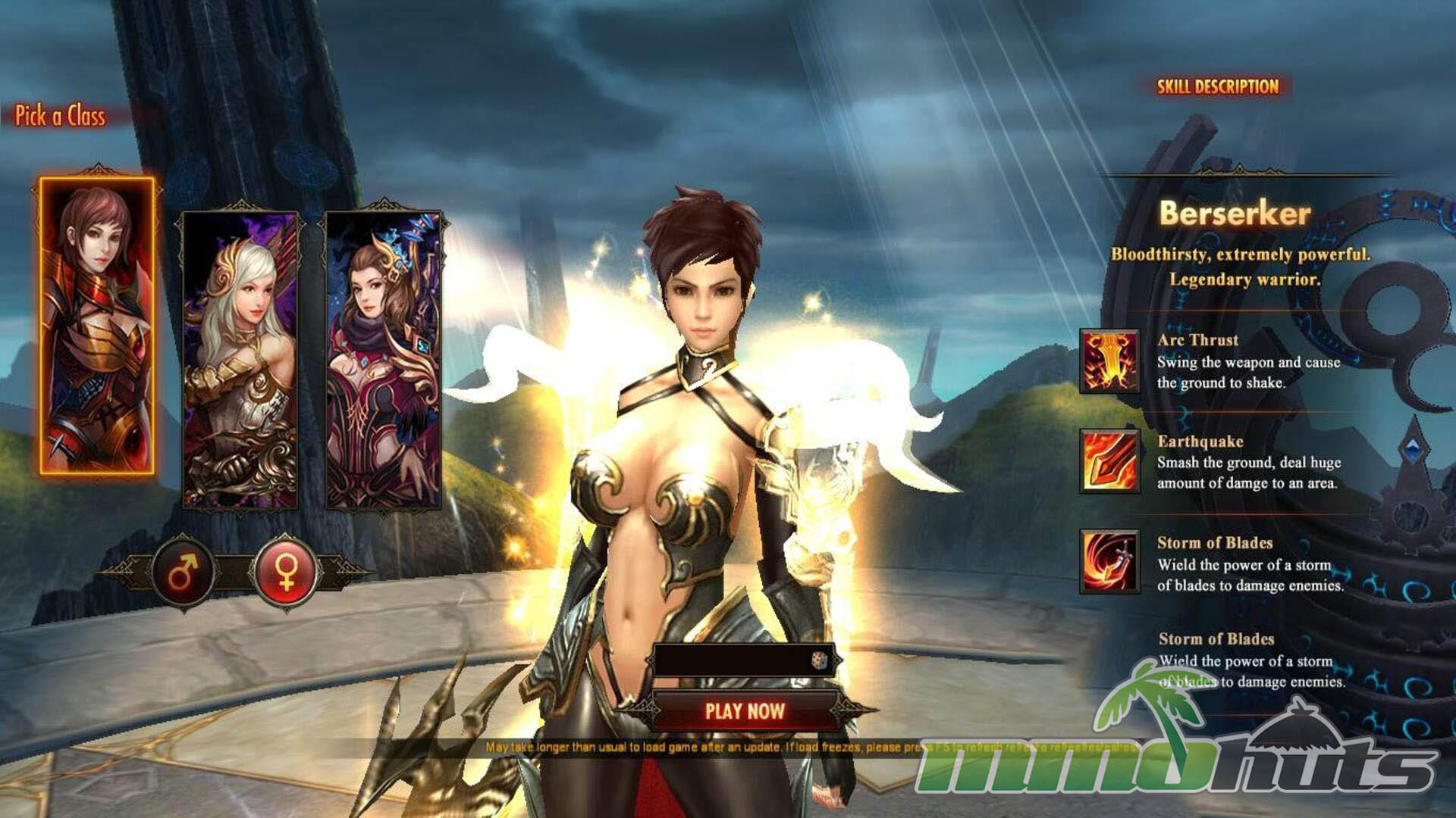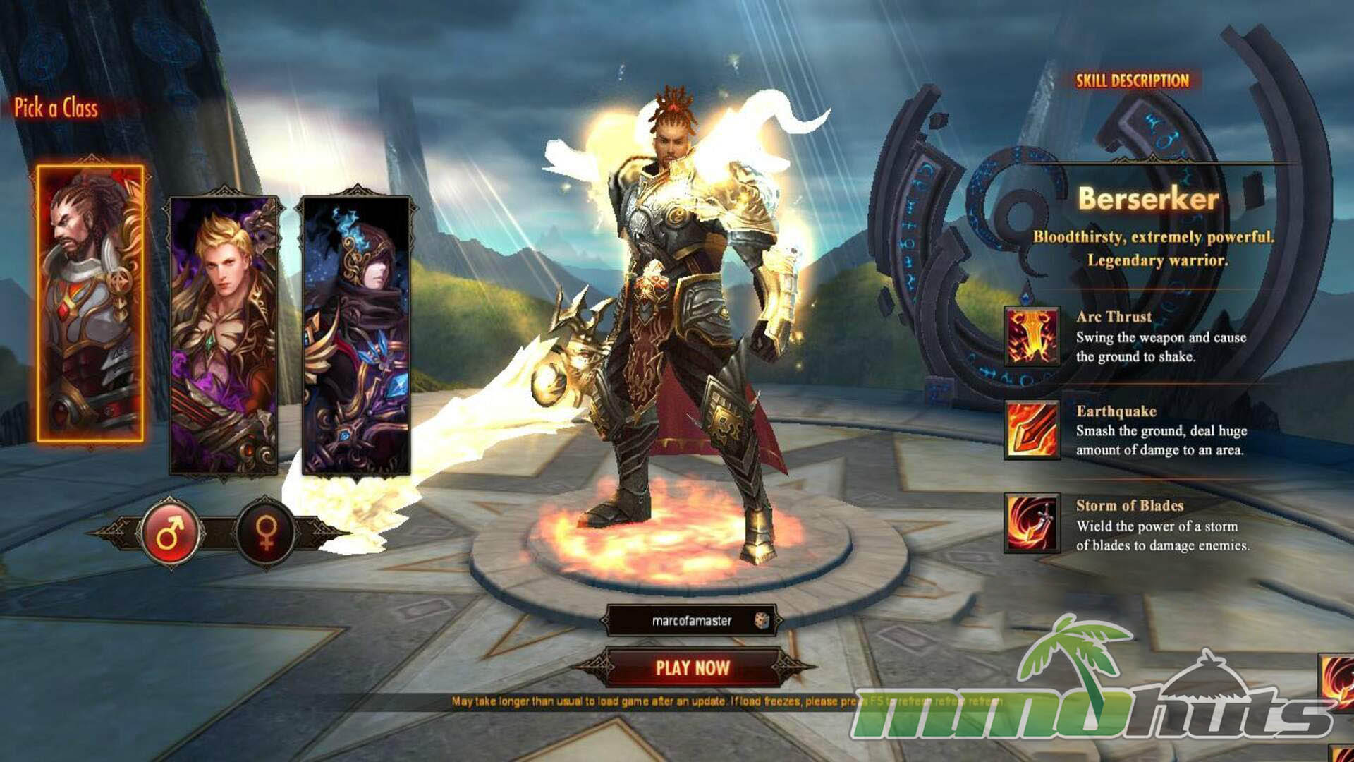 At the beginning you choose one of three fixed classes: Berserker, Assassin, or Wizard (Mage). The archetypes are easy to read if you have MMO experience: tankier melee, evasive burst, or fragile caster. One welcome option for a browser MMORPG is the ability to pick your character’s gender, even if deeper customization is limited beyond that. The opening sequence functions as a quick tutorial, briefly letting you sample powerful abilities before the narrative resets your strength and places you into the starting zone to begin the real climb.