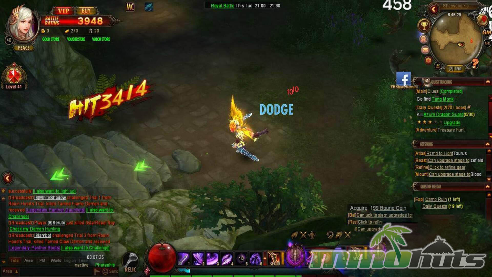 Mechanically, Dark Era follows a well-worn browser MMO roadmap. Progress is guided by a quest trail that moves you from hub to hub, mixing kill counts, collection objectives, and short story beats that lead into new maps. Alongside the quest chain you unlock the expected feature set: pets and mounts, gear enhancement, crafting-style systems, instanced dungeons, boss encounters, and group-oriented activities that become more relevant as your power rises. Combat is point-and-click, and most fights revolve around pulling groups and cycling skills to clear quickly.