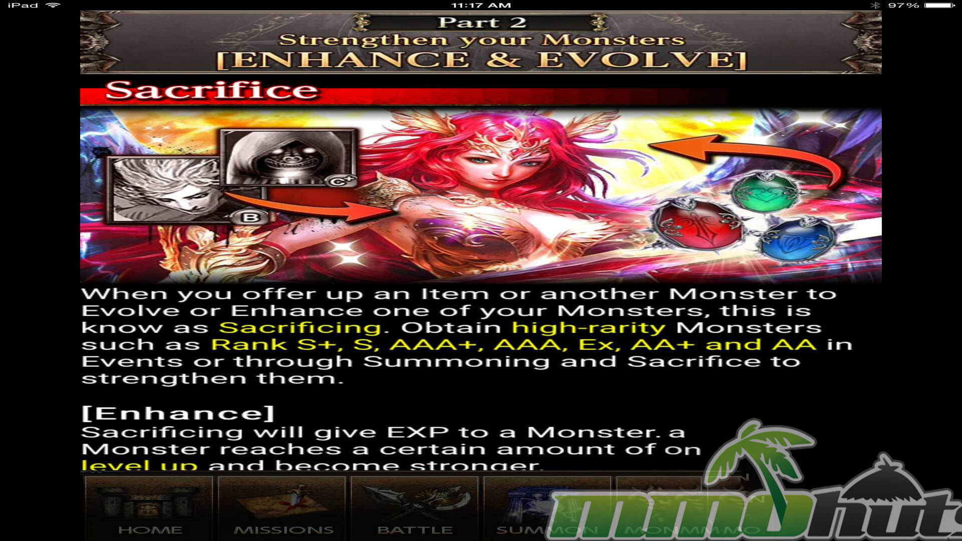 Progression is driven by familiar mobile systems: acquire monsters, feed extras into your favorites to level them, then evolve key units as your resources allow. This creates a steady sense of growth, especially if you like optimizing over time. The Mission feature also pushes the pace forward by letting you claim experience and loot quickly, which is convenient for players who want advancement without long sessions.