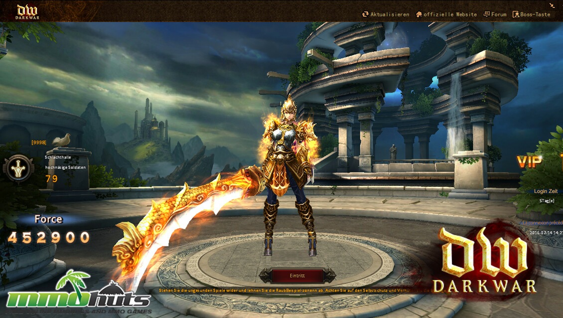 Dark War is developed by QinGuo and published by Fortune Game Limited. In terms of language support, it was offered only in German, and there were no clear statements about an English version or additional localizations. Visually, it closely resembles other similar fantasy MMORPGs such as Chrono Wars and Dark Era, giving the overall presentation a familiar, reused-asset feel.