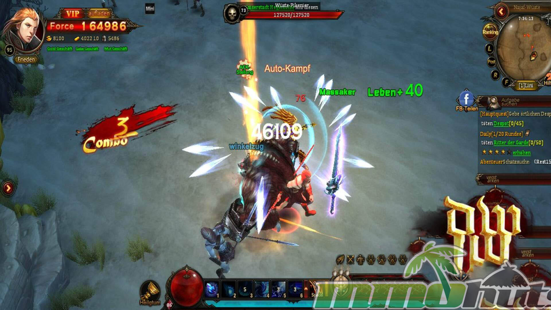 Dark War is a free-to-play dark fantasy MMORPG built around three archetypes, Berserker, Assassin, and Magician. Character growth follows familiar MMO fundamentals: you complete quests, clear instanced challenges, and hunt stronger enemies to improve gear, unlock new skills, and push your level upward. Combat is ability-driven and can be played manually, but it also supports an automated combat option for players who prefer a more hands-off grind.
