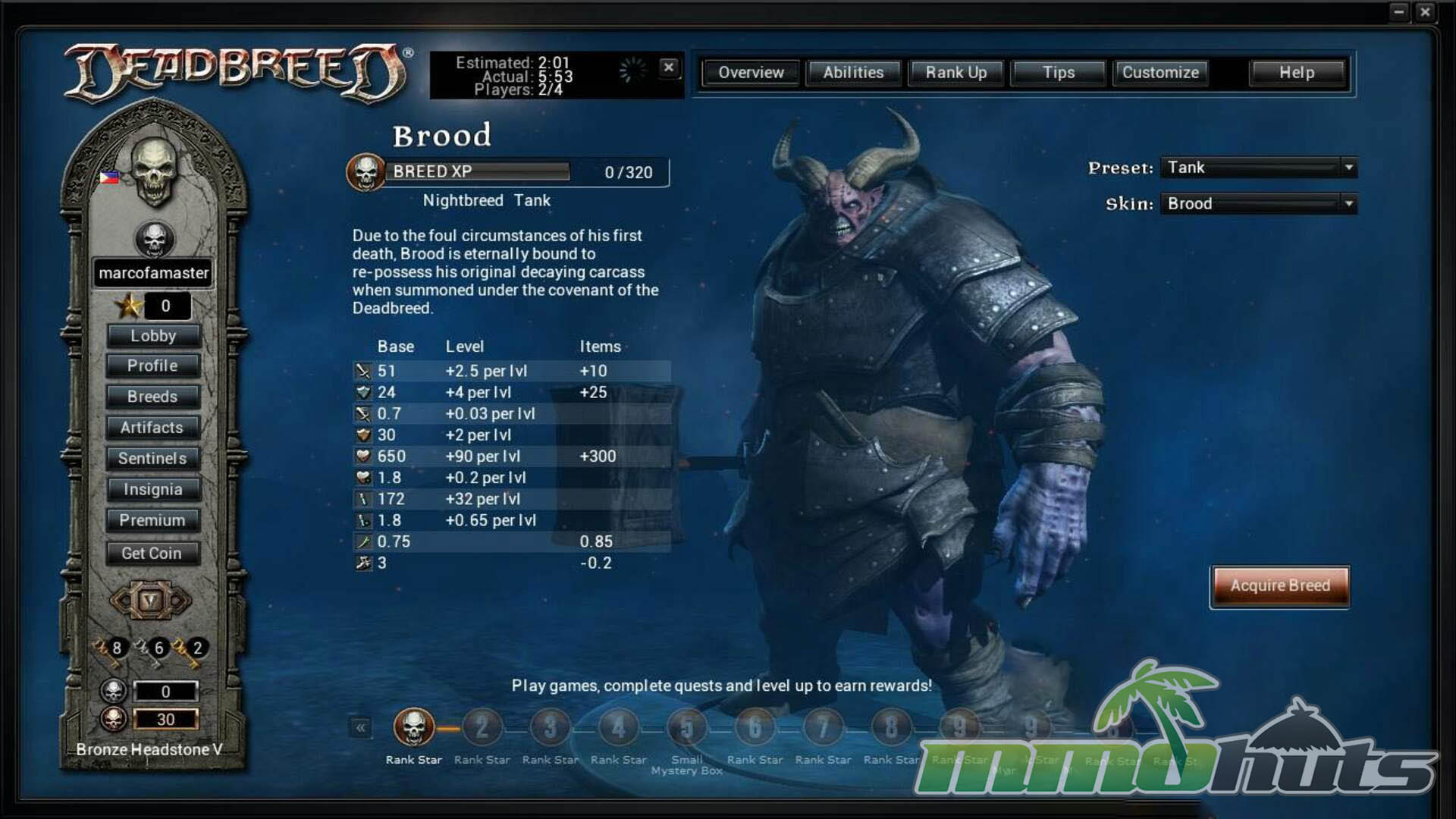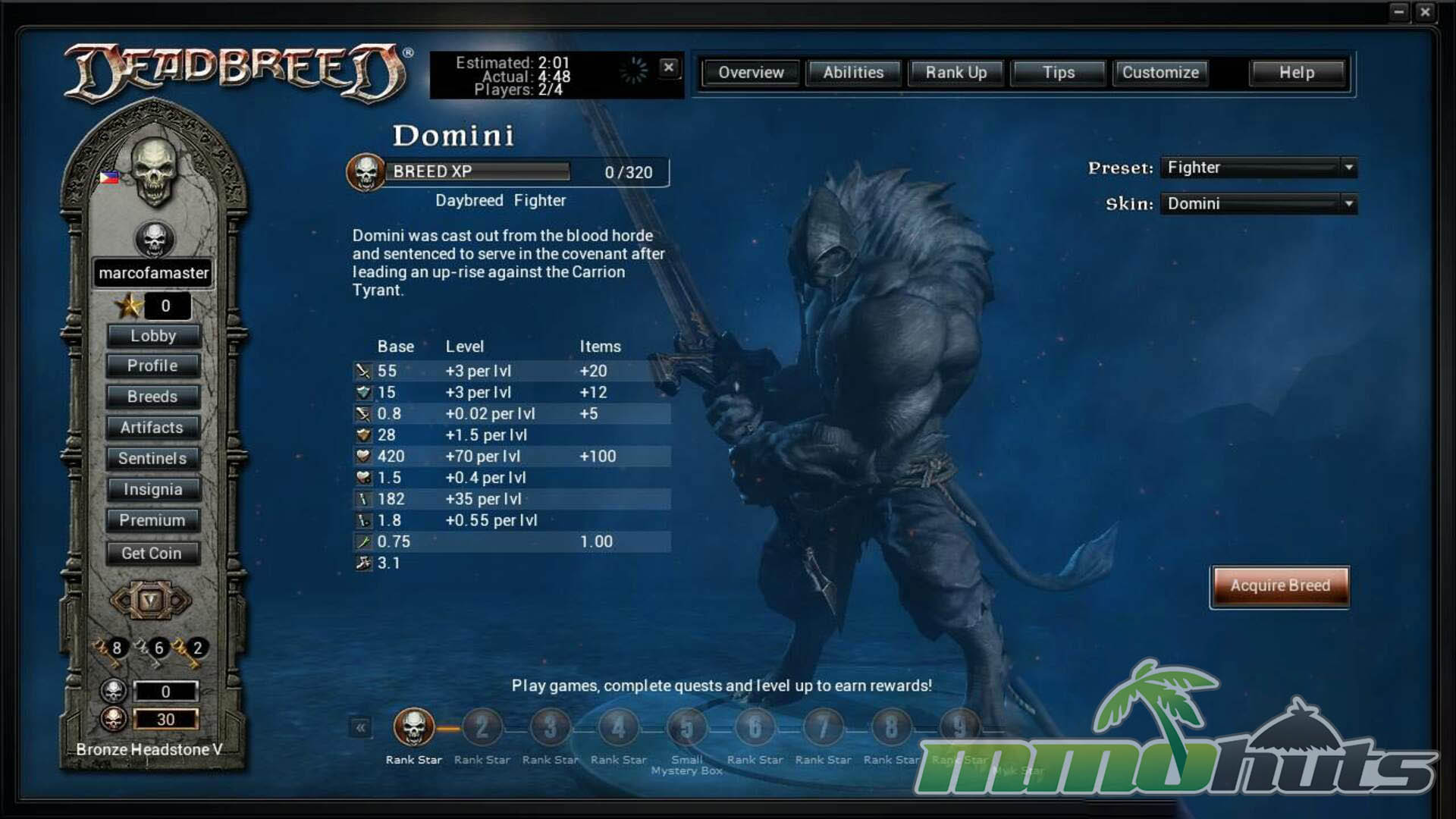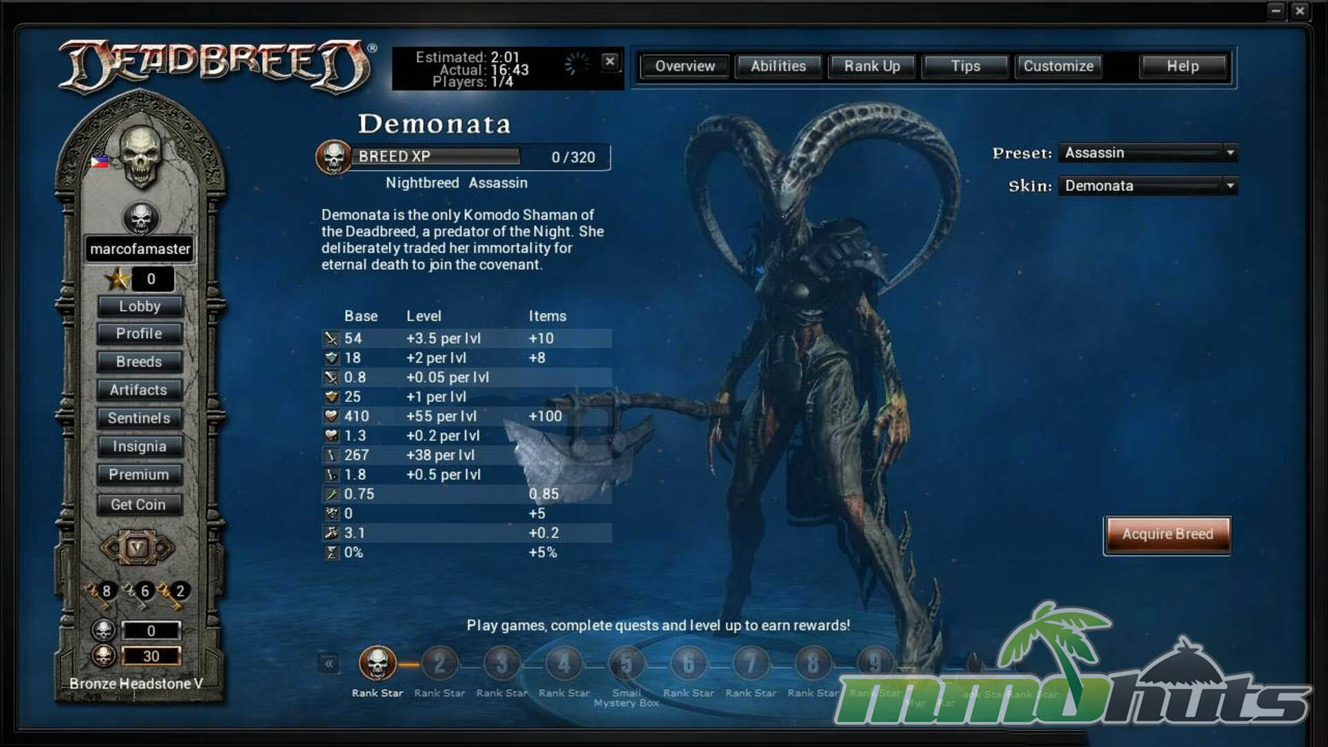 Deadbreed borrows from RPG progression by letting Breeds gain experience and rank over repeated use, improving their base stats. On top of that, Artifacts act as end-game gear where socketing collected resources provides temporary stat boosts during a match. The Artifact system itself is a solid idea, since it adds tactical decisions about when to invest resources and how to tailor your power spikes.