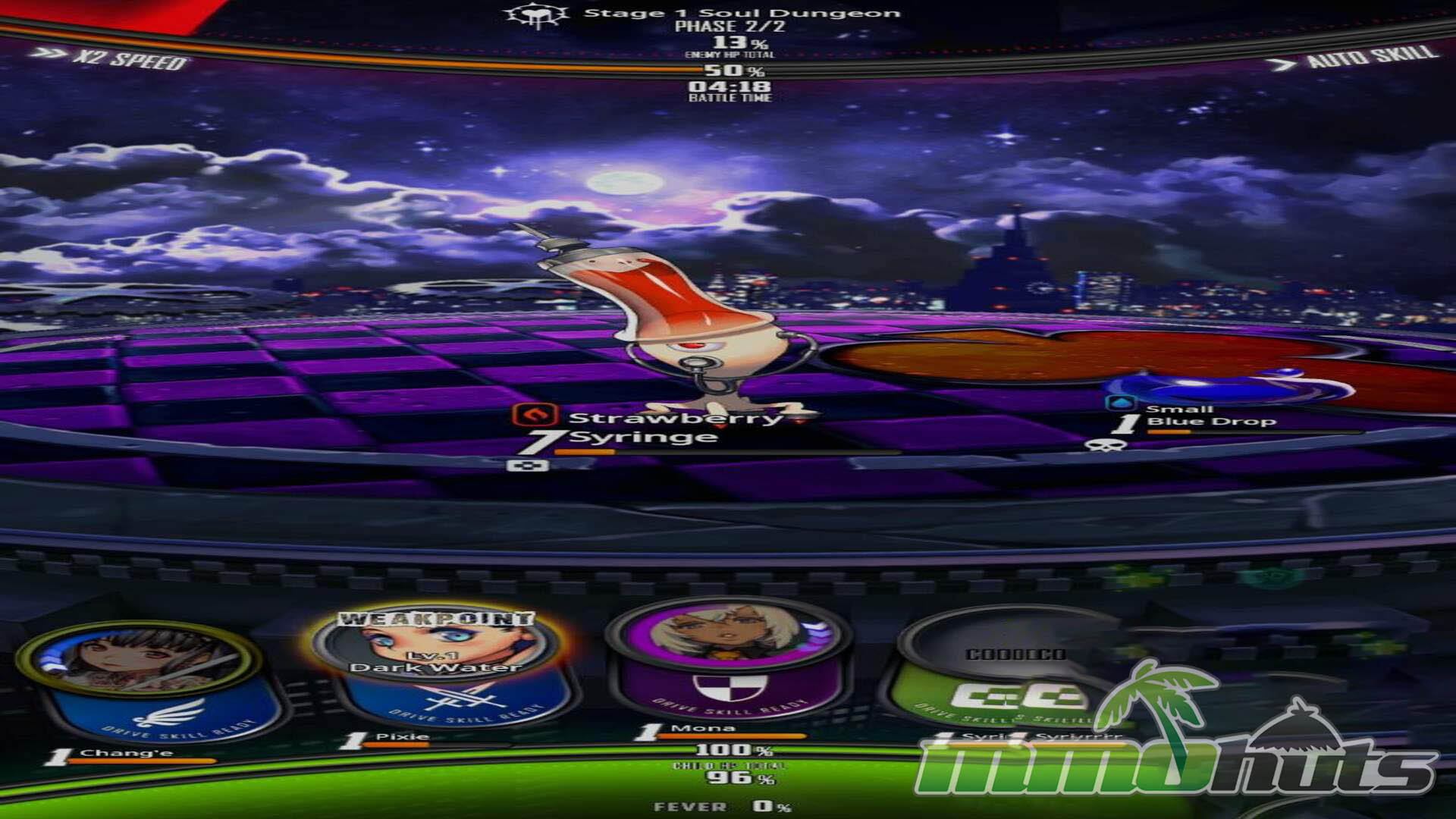 Combat is quick and readable once you learn the inputs. Each Child brings three skill types that you activate during the fight: Tap skills trigger with a tap and then enter cooldown, Slide skills are used by sliding the character icon upward, and Drive skills require filling a gauge before executing a timed quick-time sequence. Structurally, most of the narrative progression is delivered through linear, stage-based chapters, which is typical for the genre, then supplemented by rotating modes and time-limited events that encourage roster growth and specialization.