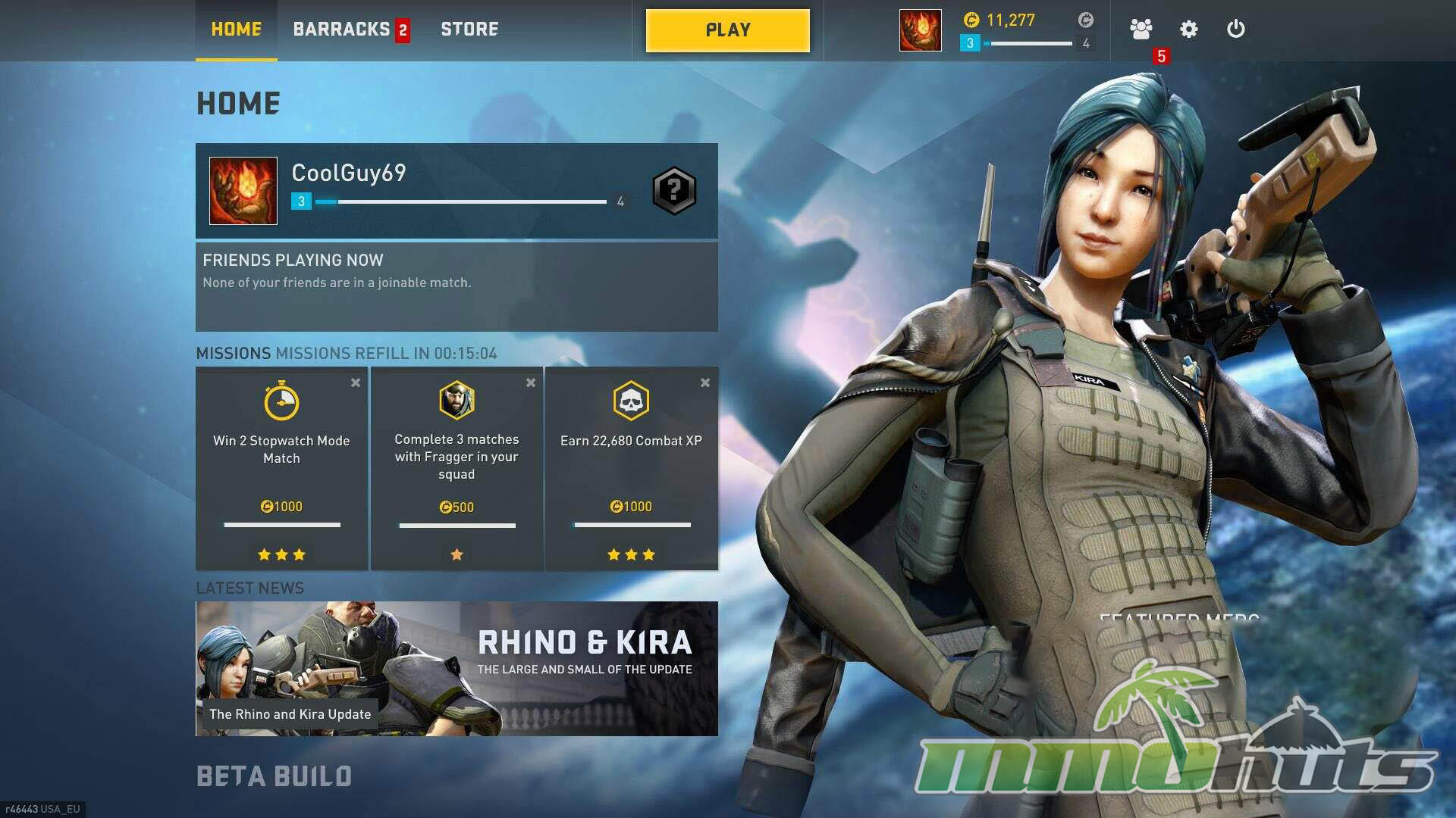 Progression revolves around earning credits via missions and general play. You can hold up to three missions at once, and they refresh every 3 hours, offering tasks such as winning specific modes or completing matches with a particular mercenary in your squad. Credits can then be spent to permanently unlock mercenaries or to buy equipment cases that award a random loadout card.