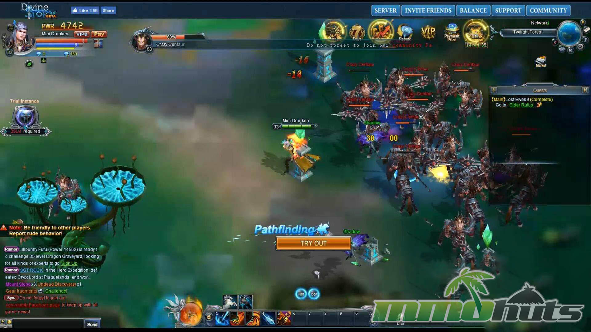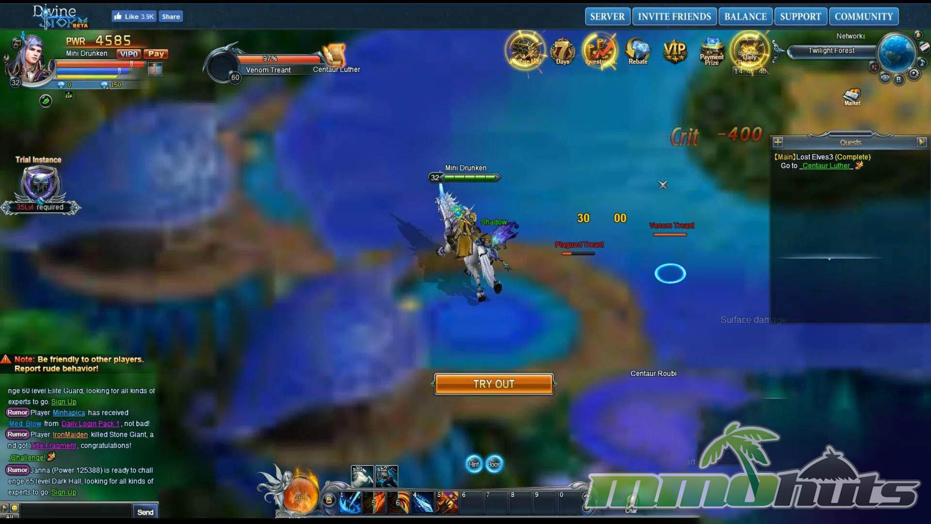 Divine Storm aims for a familiar browser MMO formula: quick access, constant rewards, and a steady stream of upgrades that push your power rating upward. From the first minutes it is clear the game prioritizes momentum. Quests chain into each other rapidly, enemies are designed to be cleared in groups, and the interface keeps multiple progression tracks in view at all times. If you enjoy games where there is always a new button to press for a reward or an upgrade, Divine Storm understands that appeal.