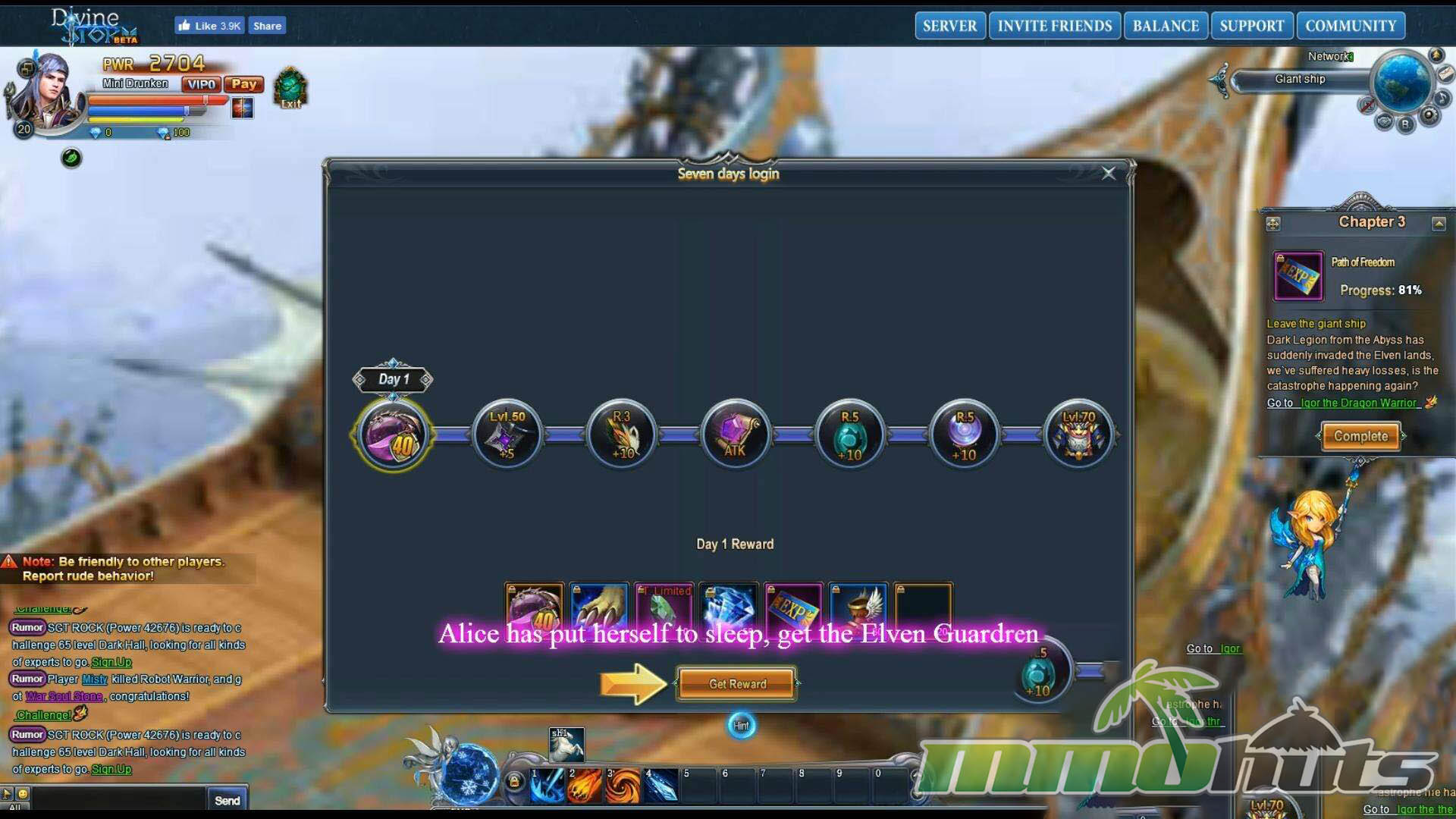 | Publisher: Infiplay Playerbase: Medium Type: Browser MMORPG Release Date: March 10, 2017 Pros: +Daily login bonuses and recurring rewards. +Regular weekly event activity. +Bright, satisfying skill visuals. Cons: -Heavy reliance on auto-play. -Noticeable pop-in on some effects. -Busy, cluttered UI layout. |