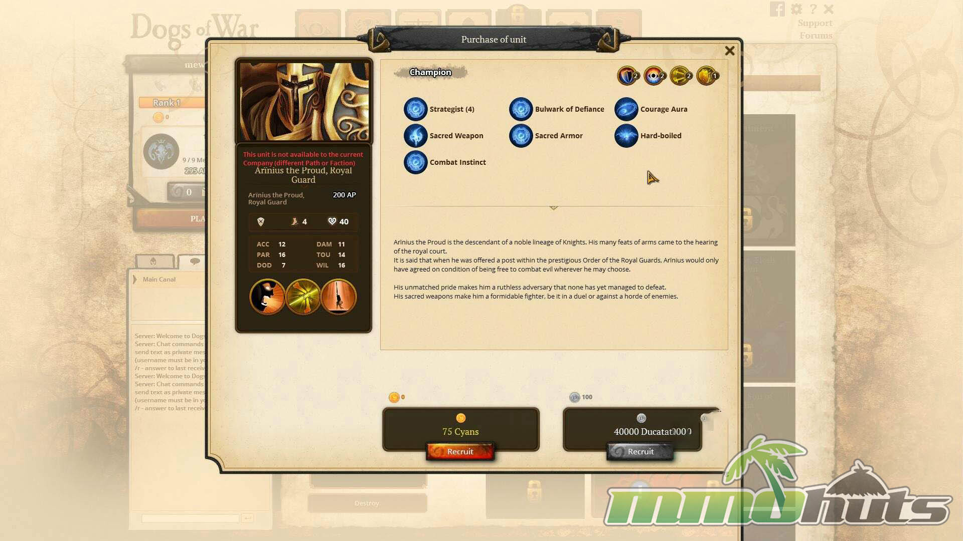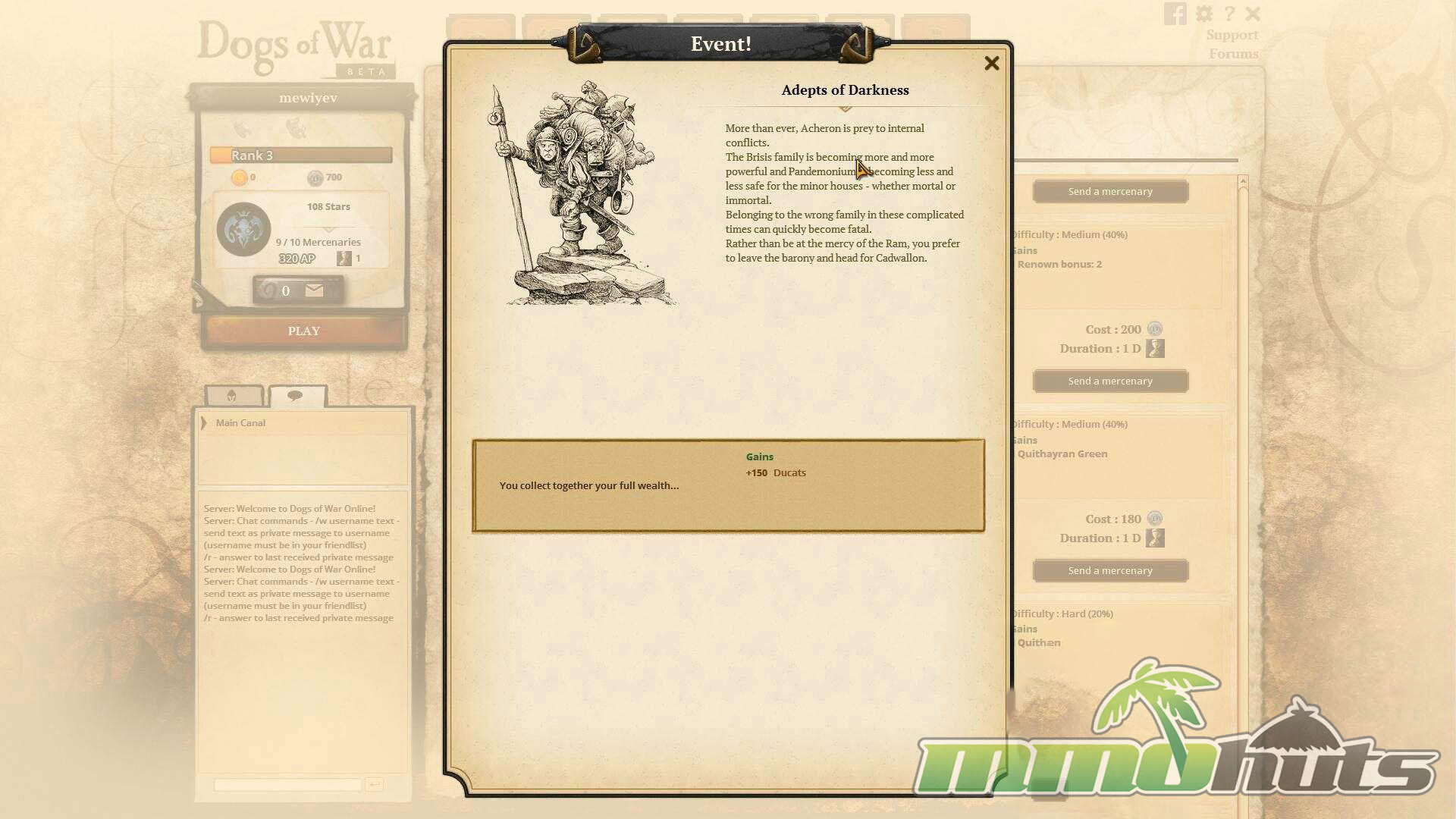 Dogs of War Online takes the framework of the Confrontation tabletop miniatures game and adapts it into a free-to-play, turn-based strategy MMO. You assemble a mercenary company from fantasy troops, then test your tactics in structured PvP modes or practice against AI, with positioning and unit matchups doing most of the heavy lifting.