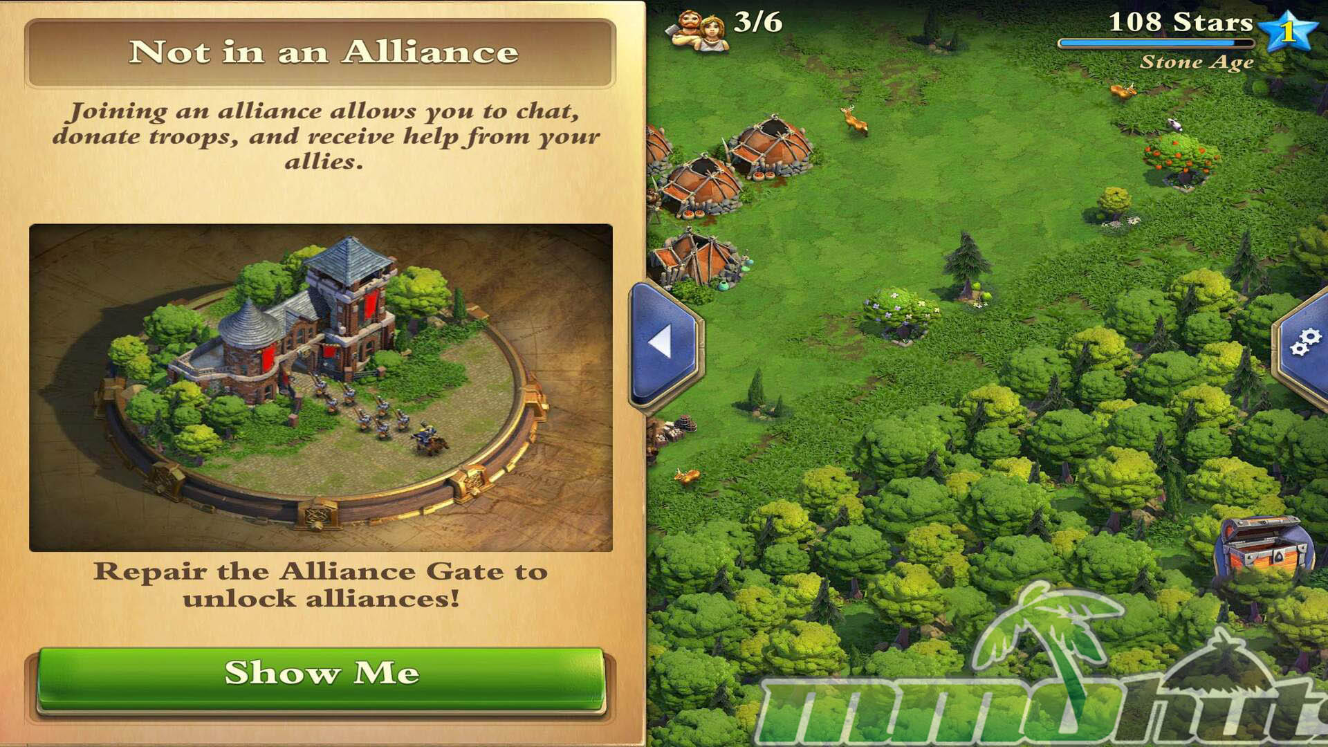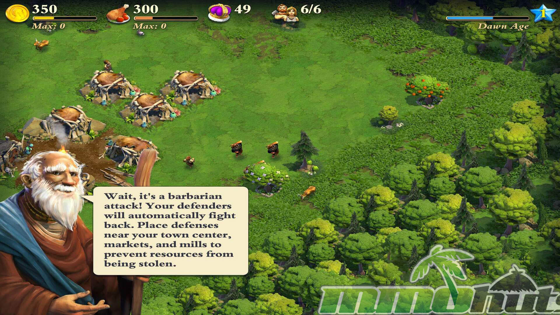 DomiNations is a mobile strategy MMO on iOS and Android, developed by Big Huge Games and published by NEXON M. It begins at a very humble scale, a handful of citizens and basic buildings, with workers handling simple tasks like collecting food and pulling gold from the ground. From there, it settles into familiar base building territory: you place structures, upgrade them over time, queue troops, and coordinate with an alliance while defending your own settlement from raids.