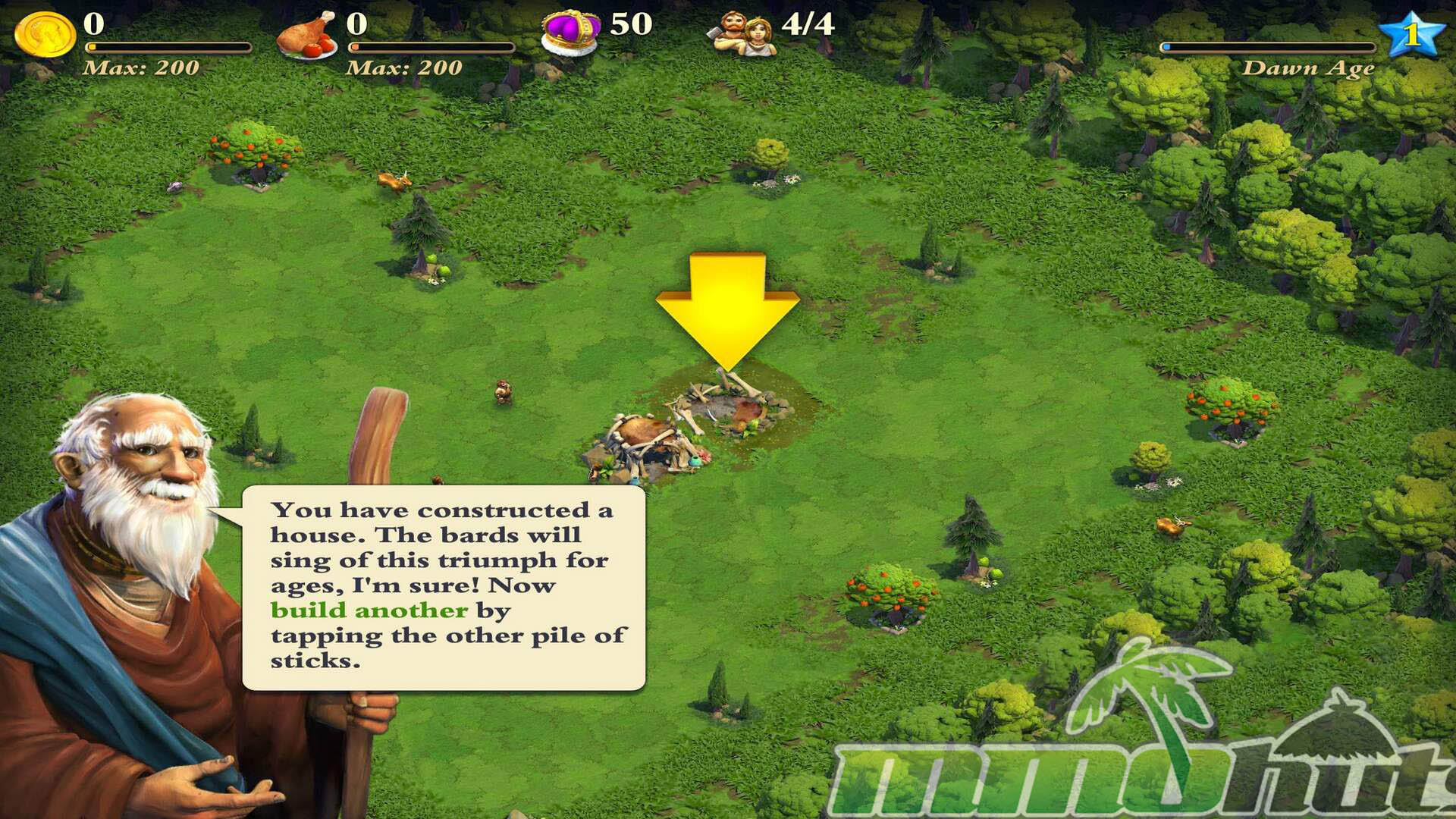 DomiNations is a mobile strategy MMO on iOS and Android, developed by Big Huge Games and published by NEXON M. It begins at a very humble scale, a handful of citizens and basic buildings, with workers handling simple tasks like collecting food and pulling gold from the ground. From there, it settles into familiar base building territory: you place structures, upgrade them over time, queue troops, and coordinate with an alliance while defending your own settlement from raids.